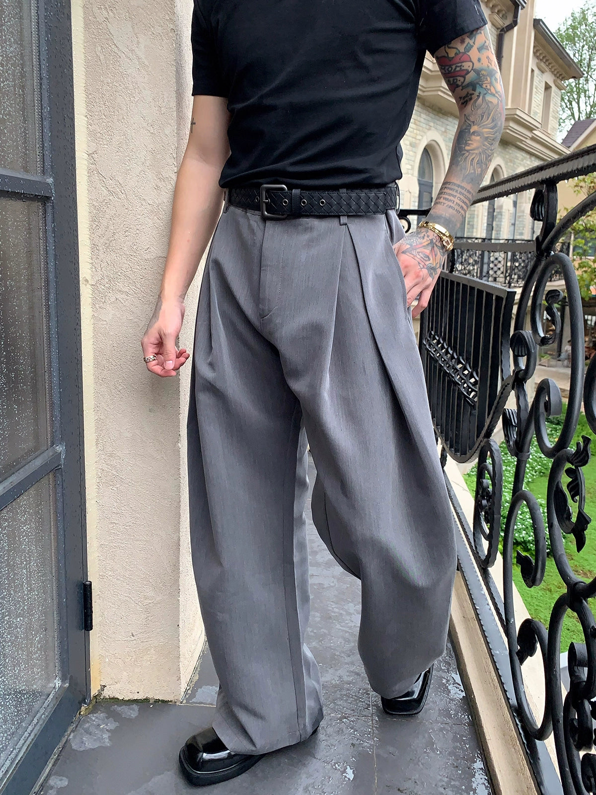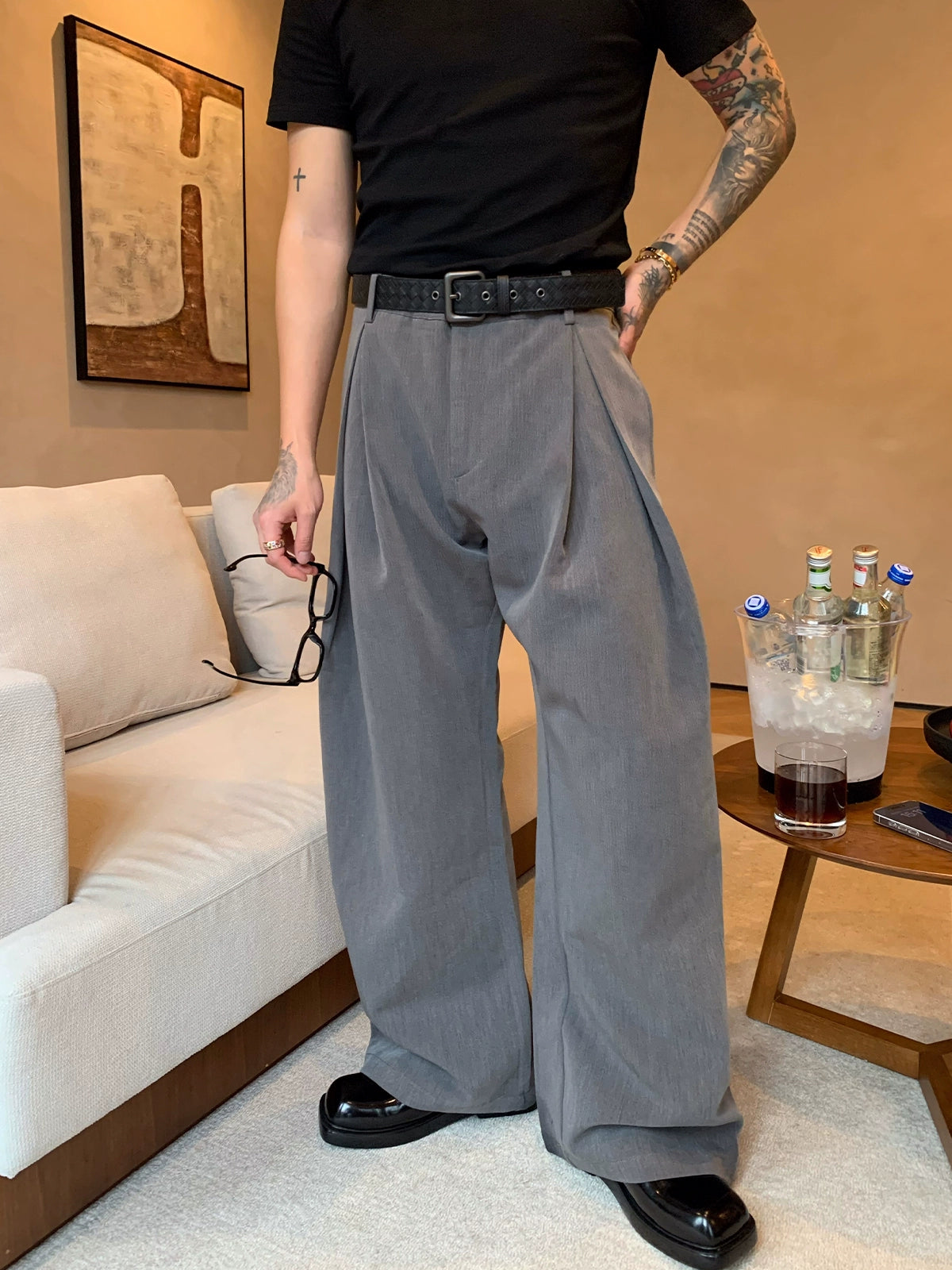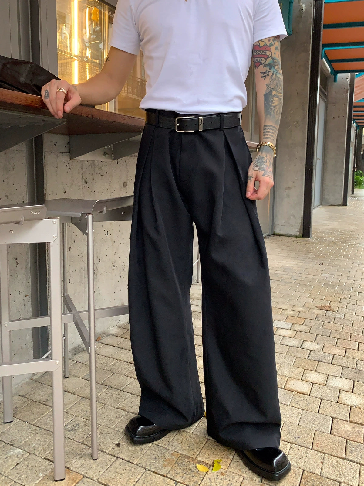 بنطلونات A-Line مطوية واسعة الساق