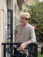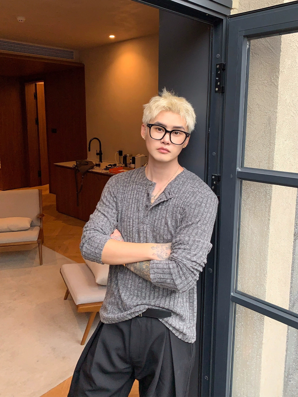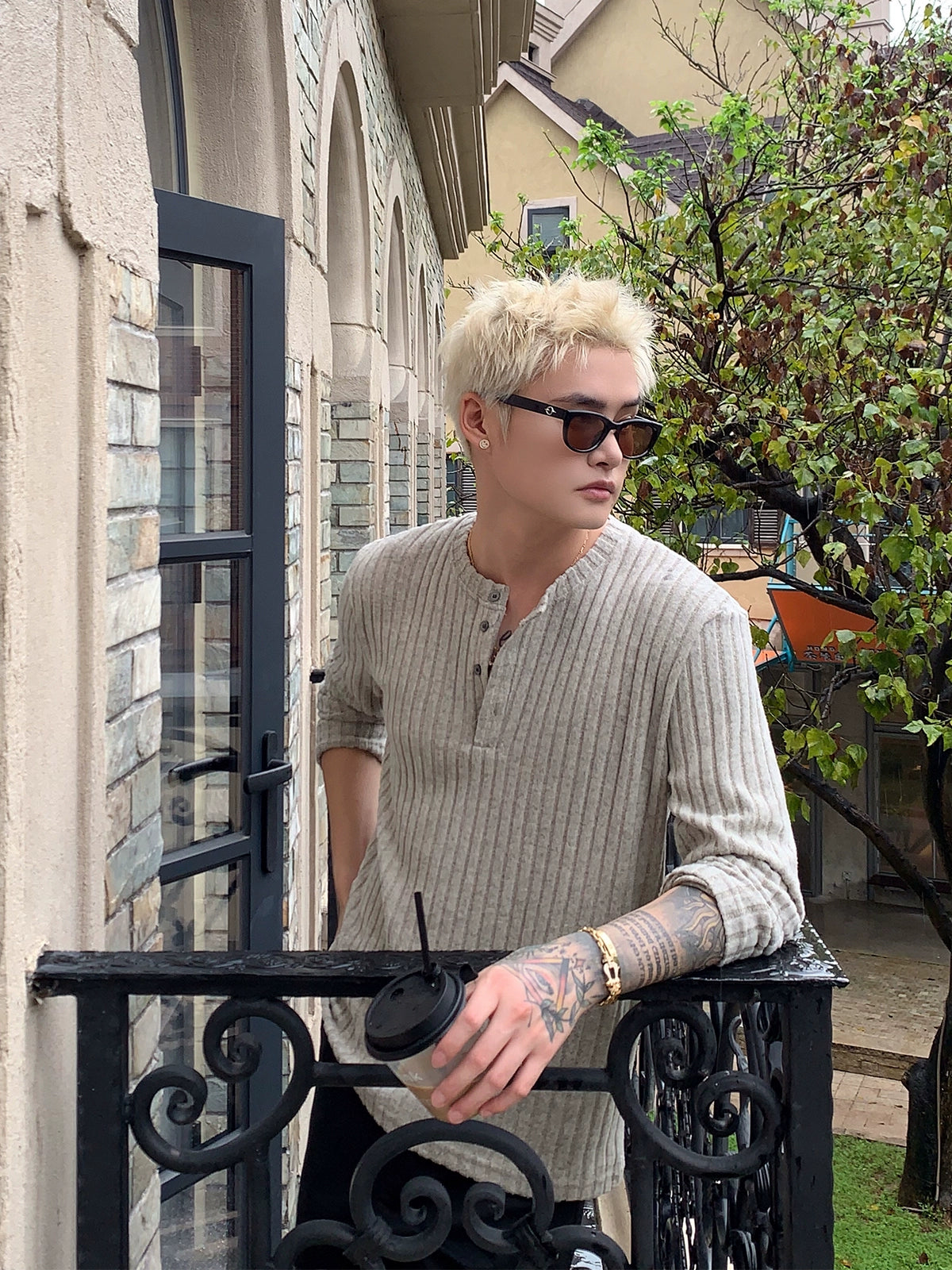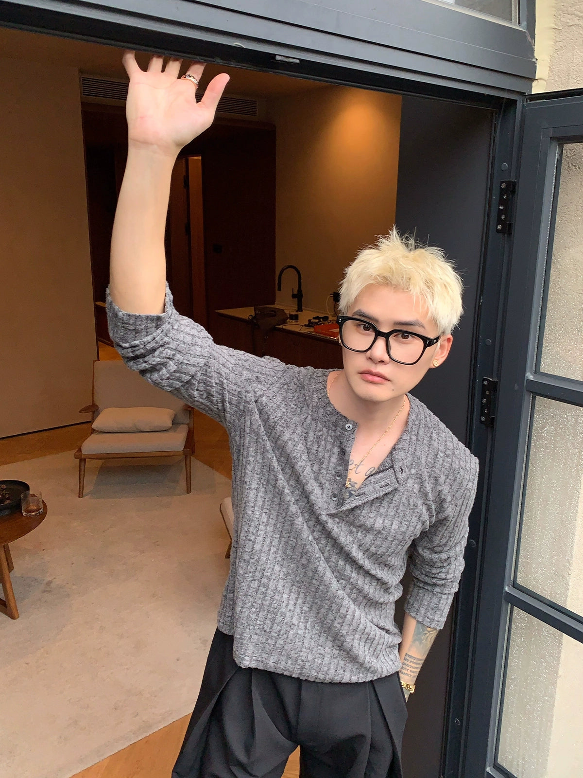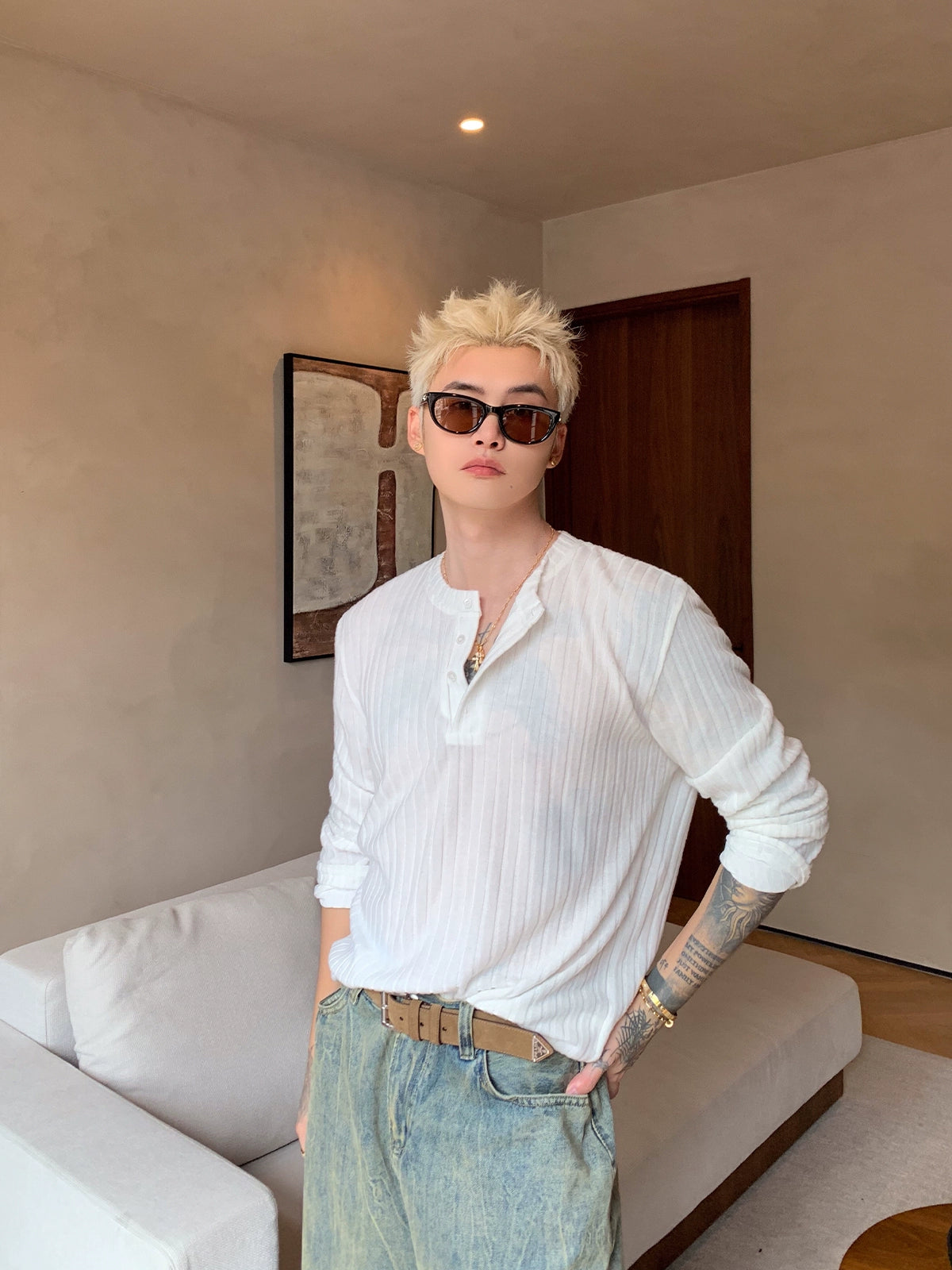 بلوزة طويلة الأكمام ذات نسيج بدون ياقة