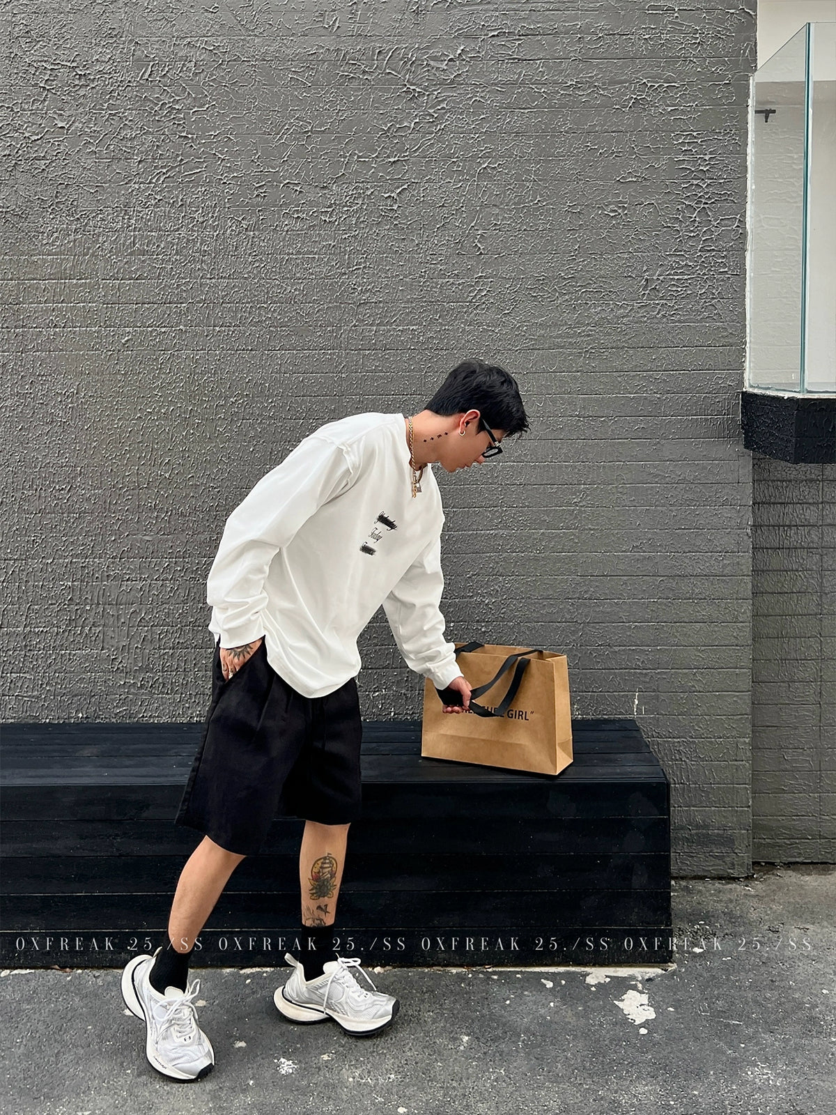 بلوزة قطنية ثقيلة بأكمام طويلة فضفاضة