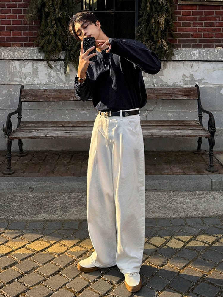 قميص هينلي بولوفر بأكمام طويلة من القطن