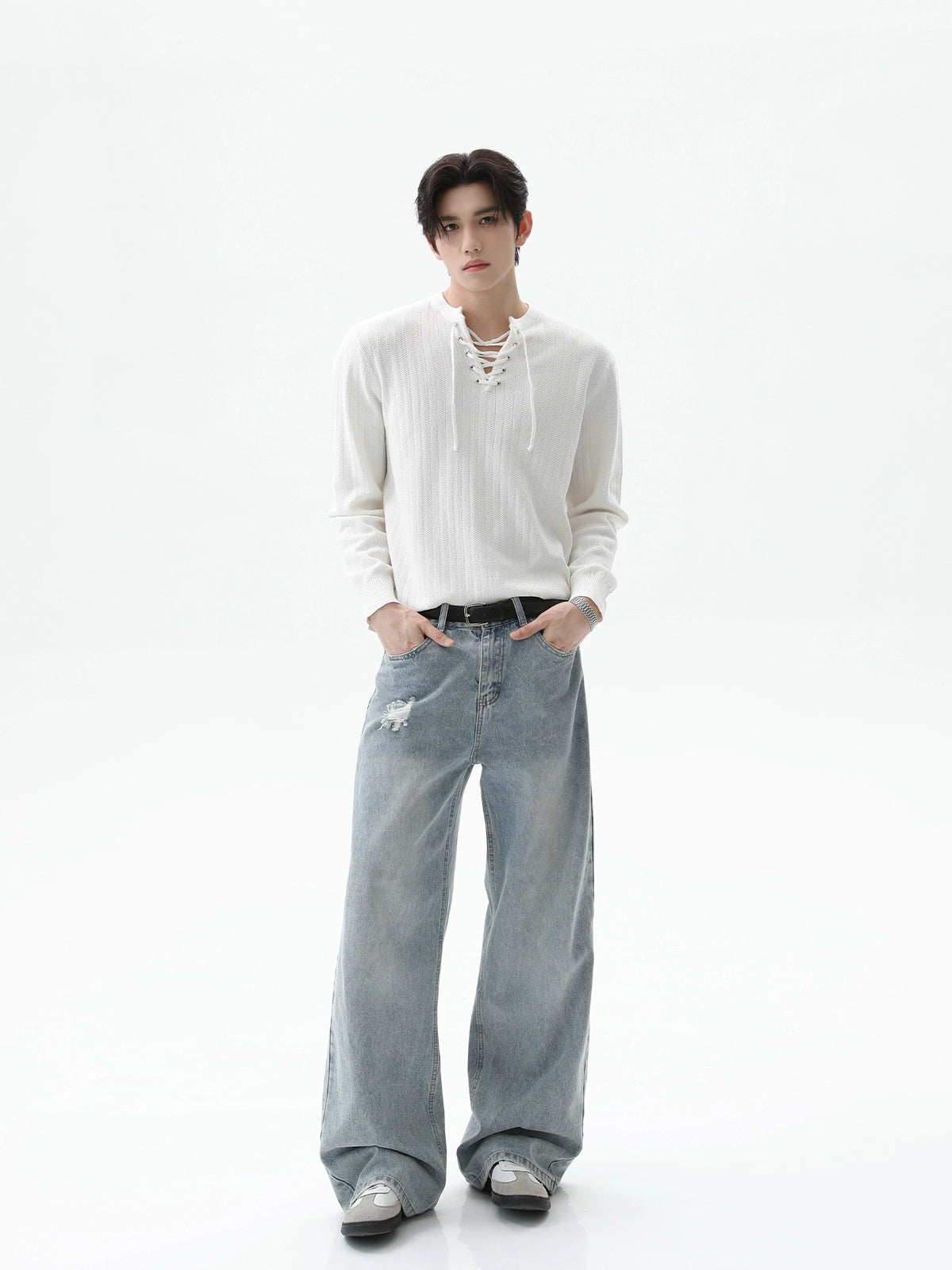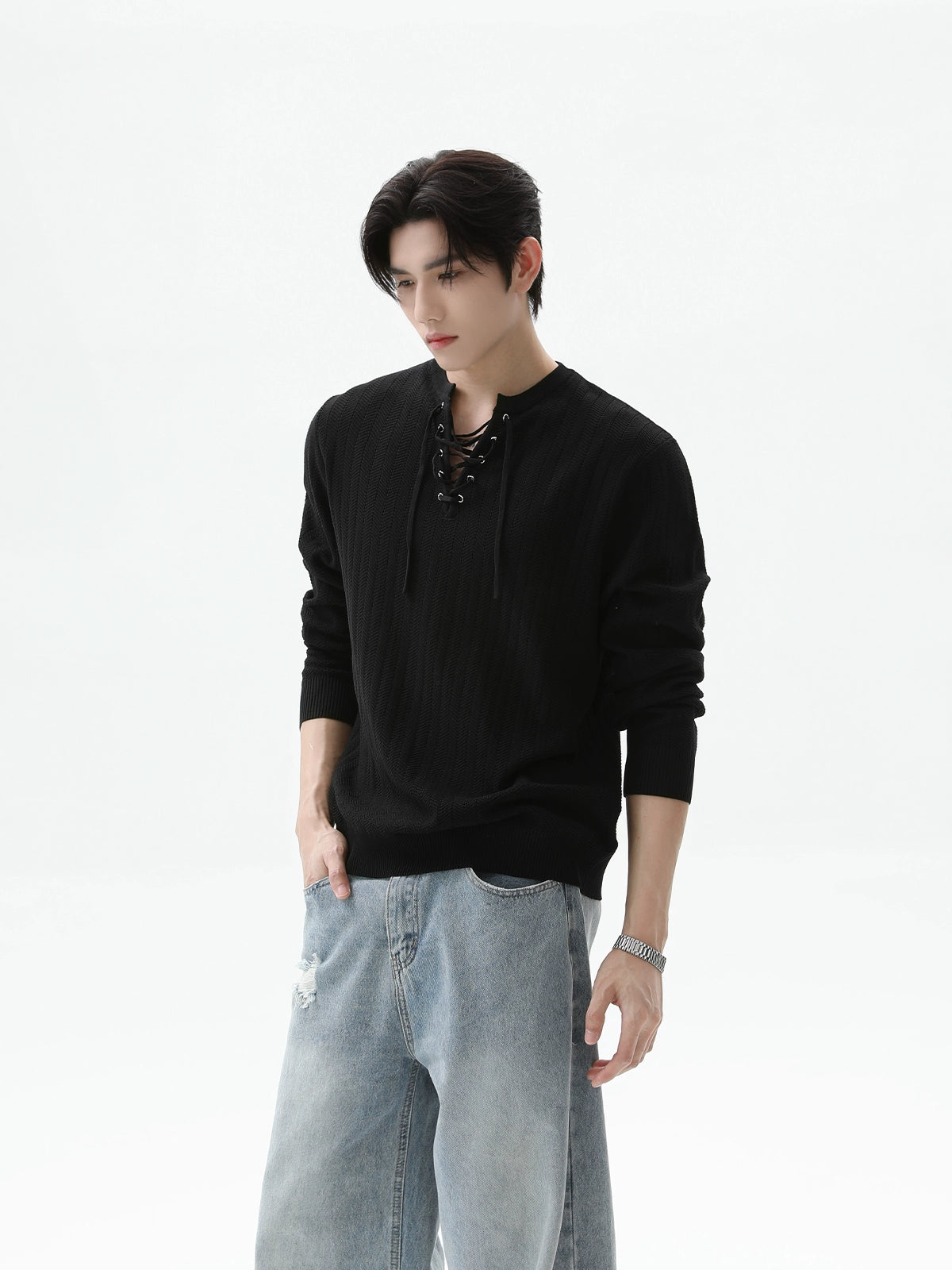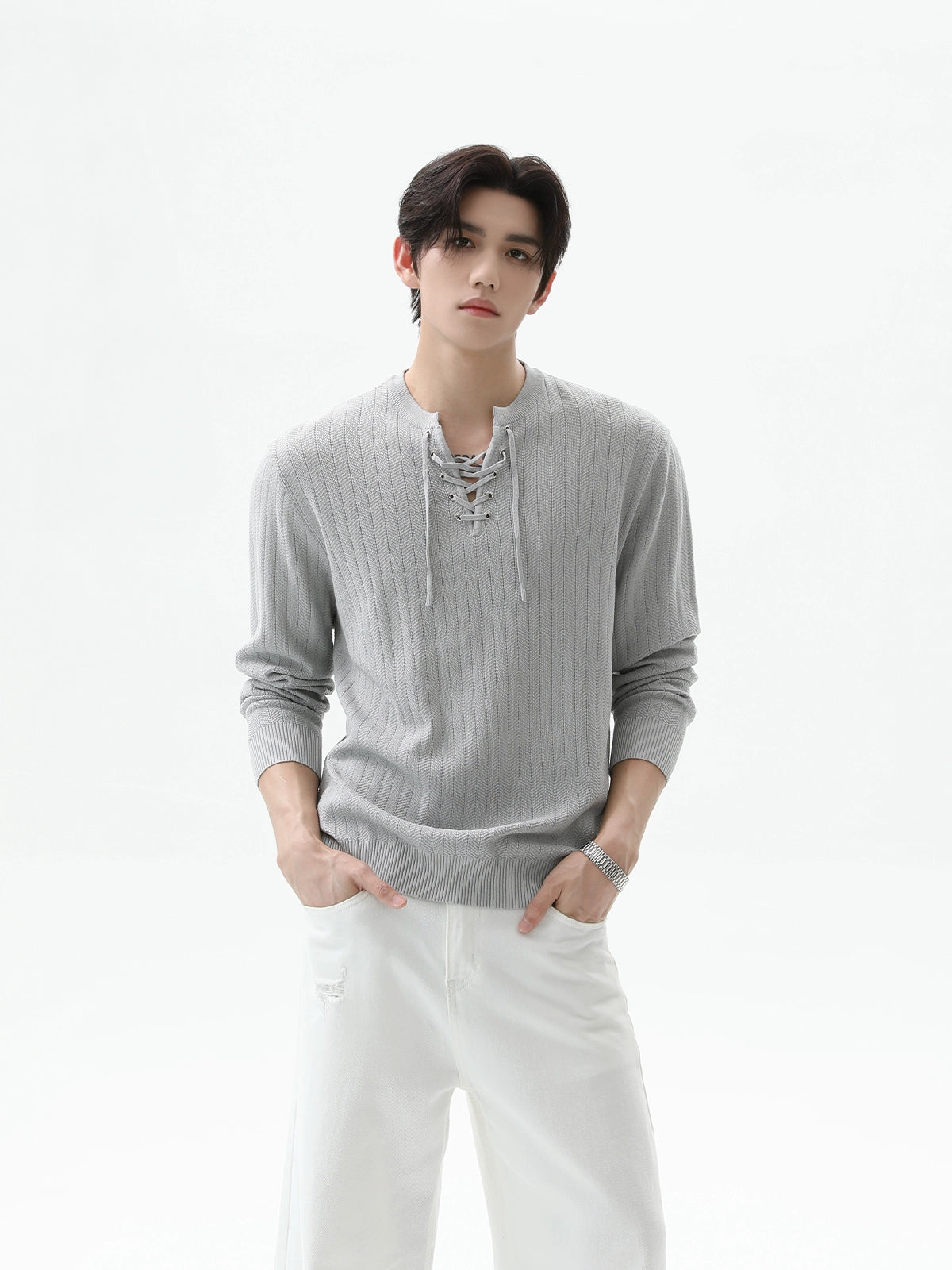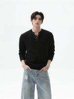 سُترة بُلُوفَر بأكمام طويلة من نسيج محبوك مع حبل سحب