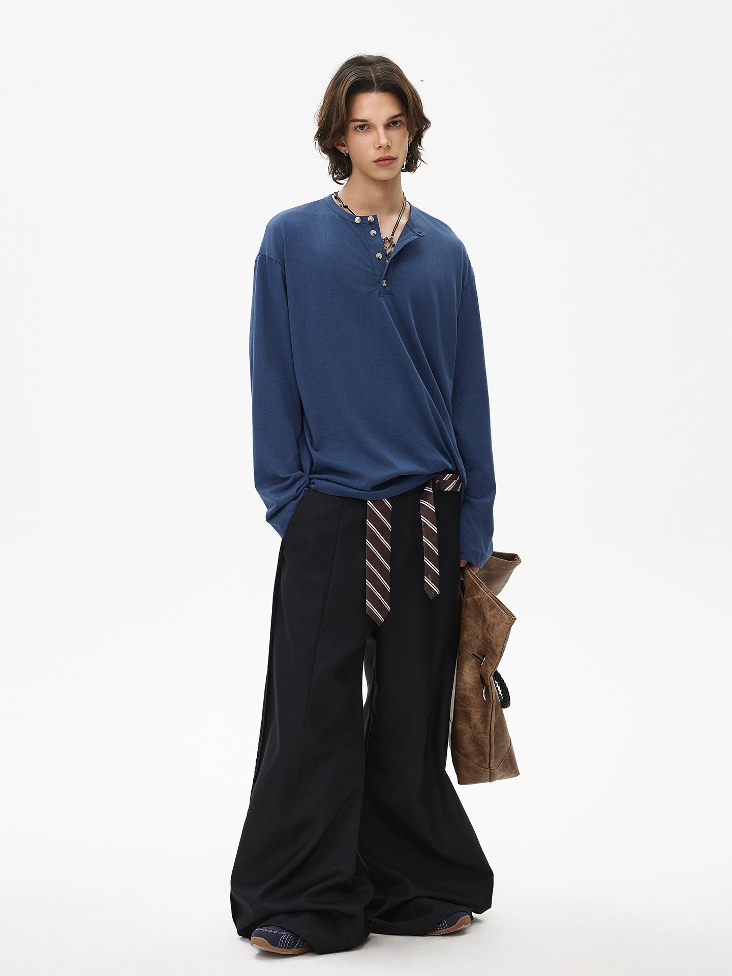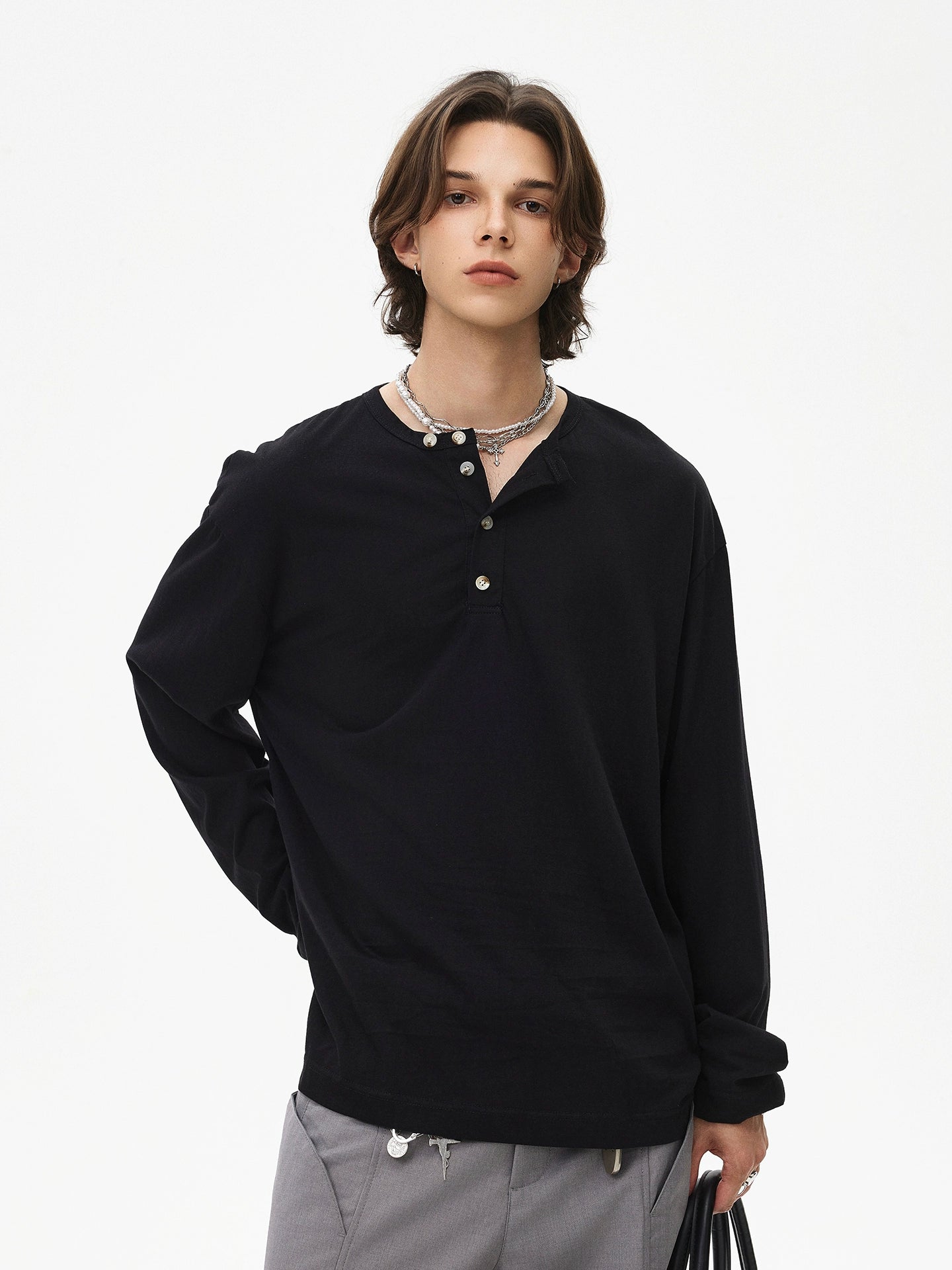 قميص بولو بأكمام طويلة وياقة هينلي