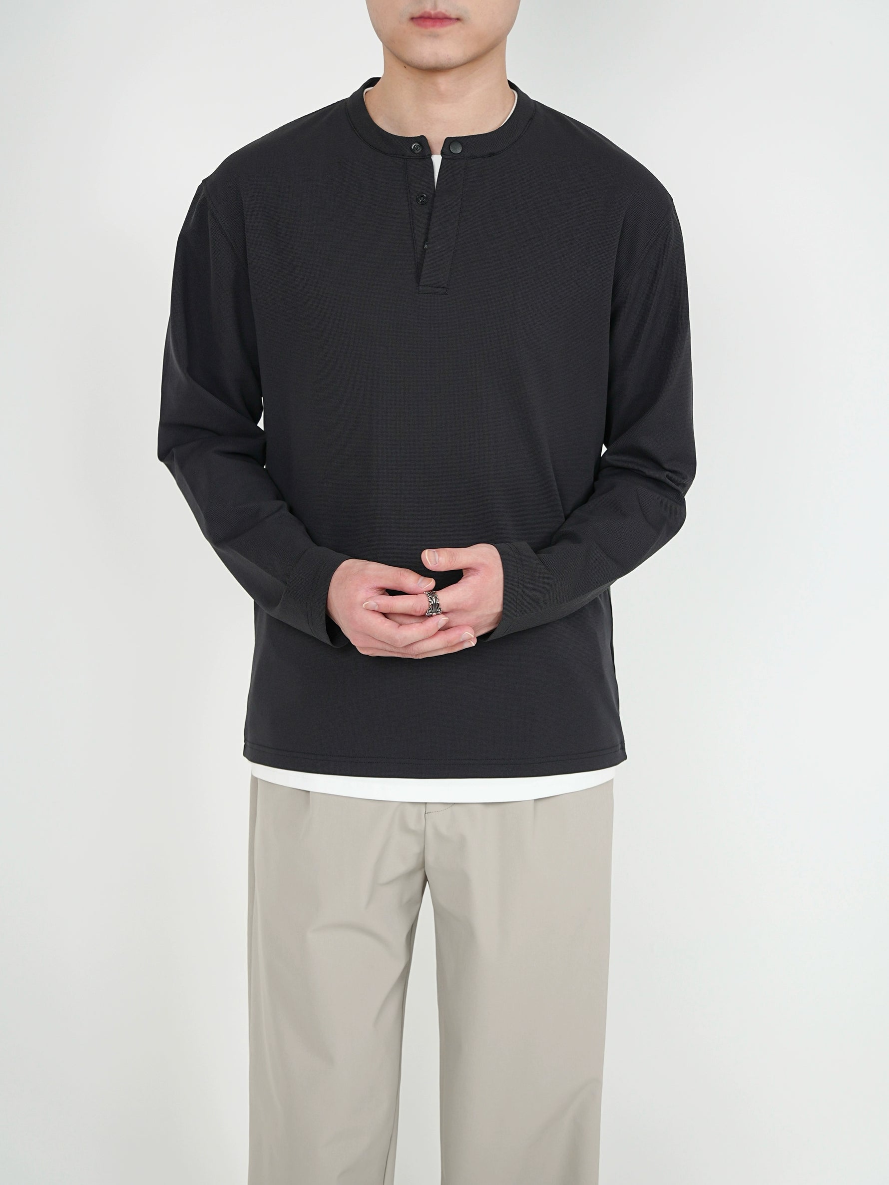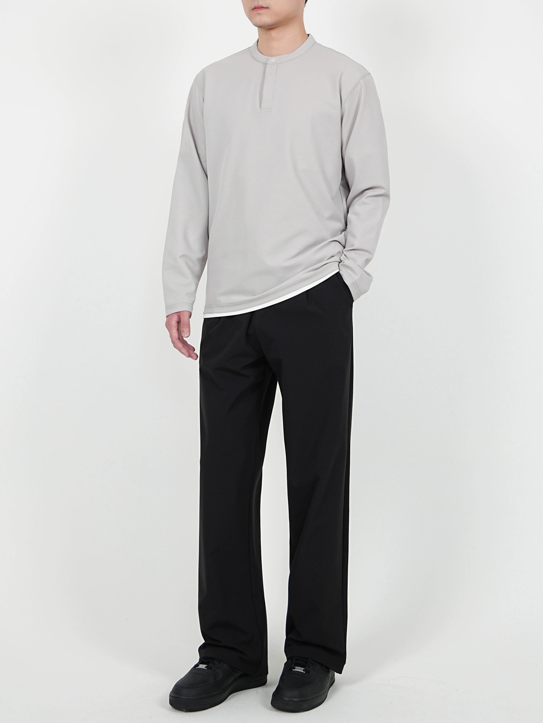 قميص هينري كولار بأكمام طويلة وسحّاب