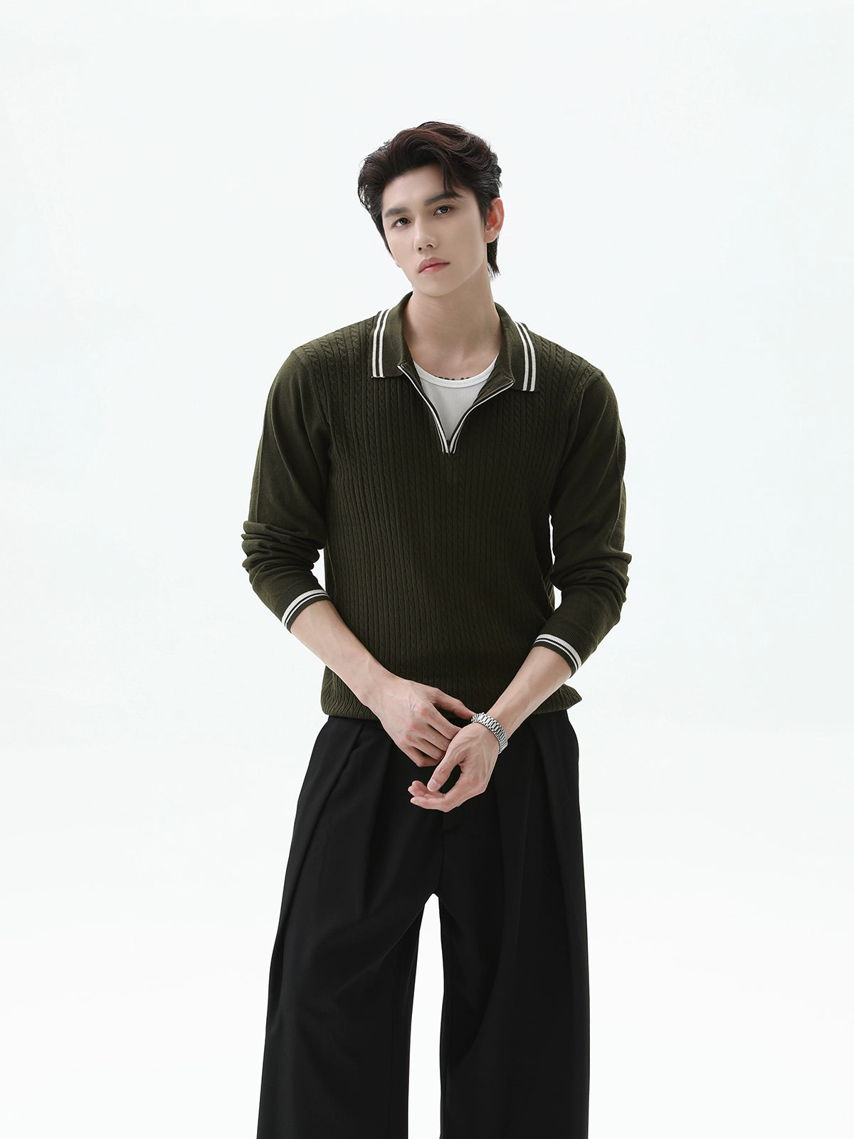 سترة بولو بولوفر نصف سحاب محبوكة