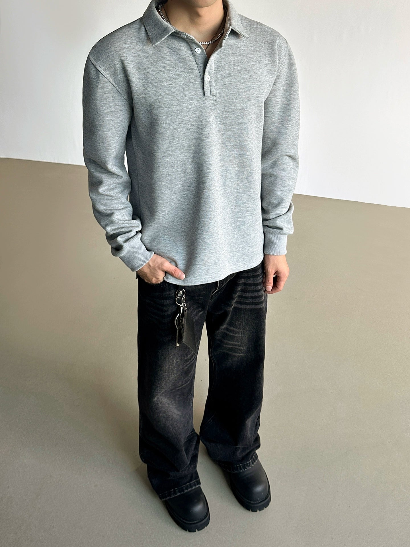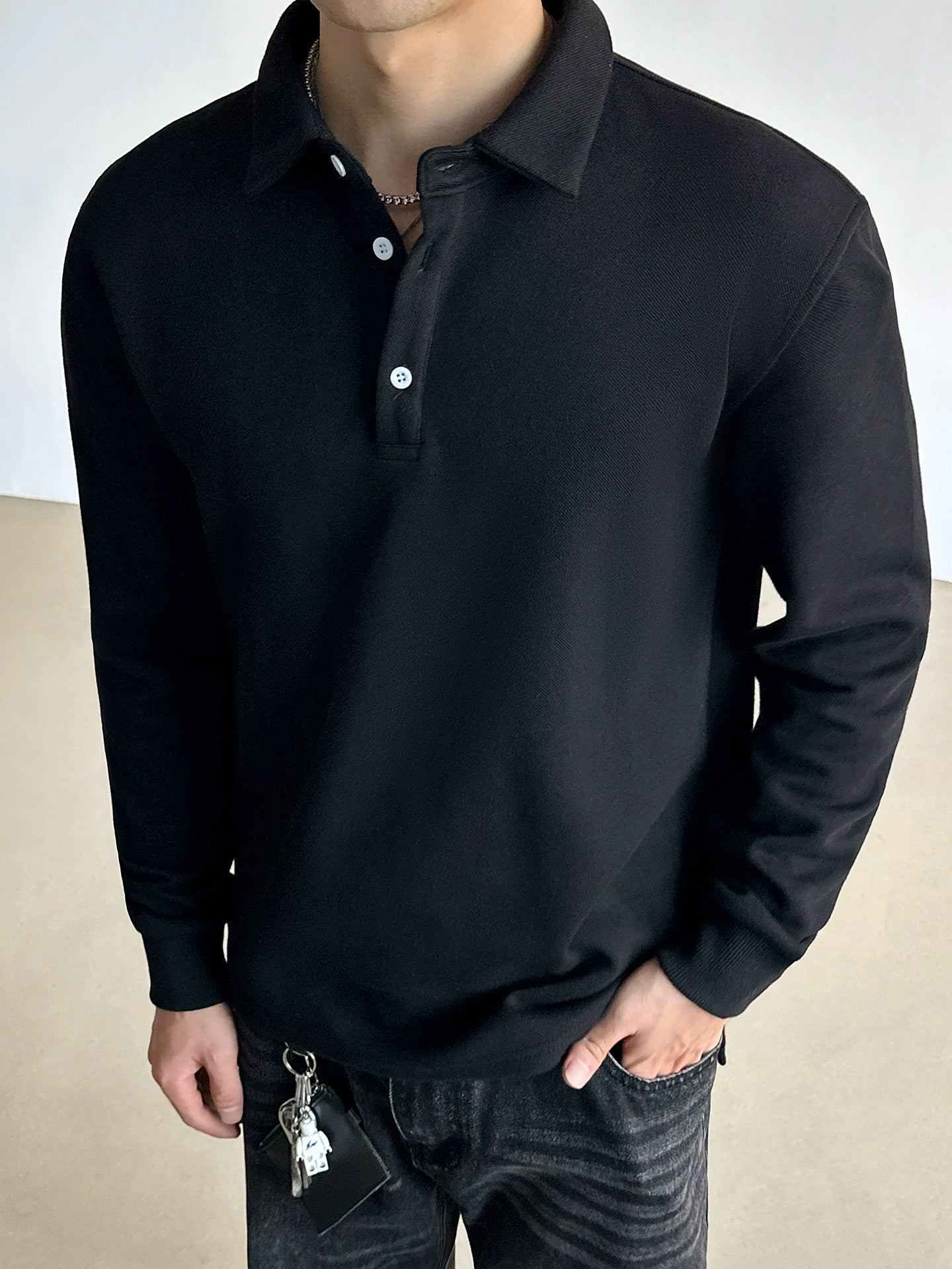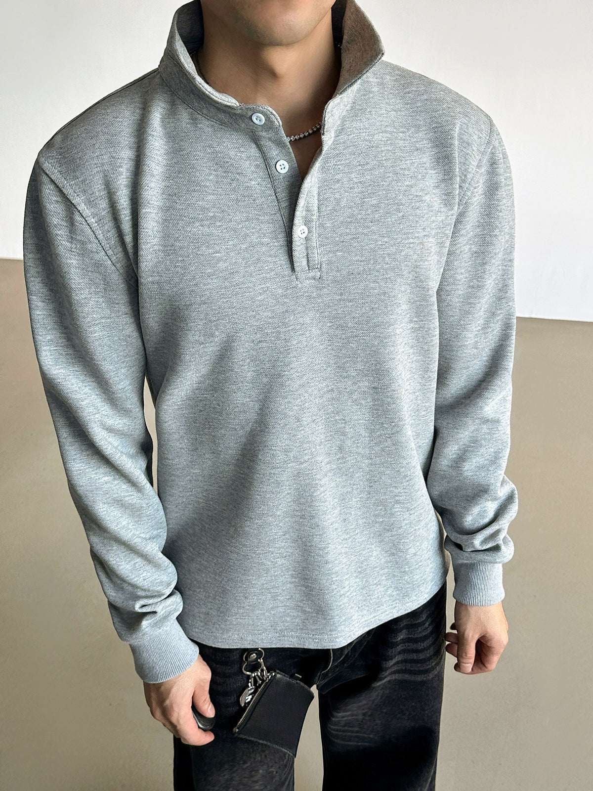 قميص هينلي بولو بولوفر بأكمام طويلة
