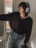 بلوزة سُتُرَة محبوكة ذات أكمام طويلة