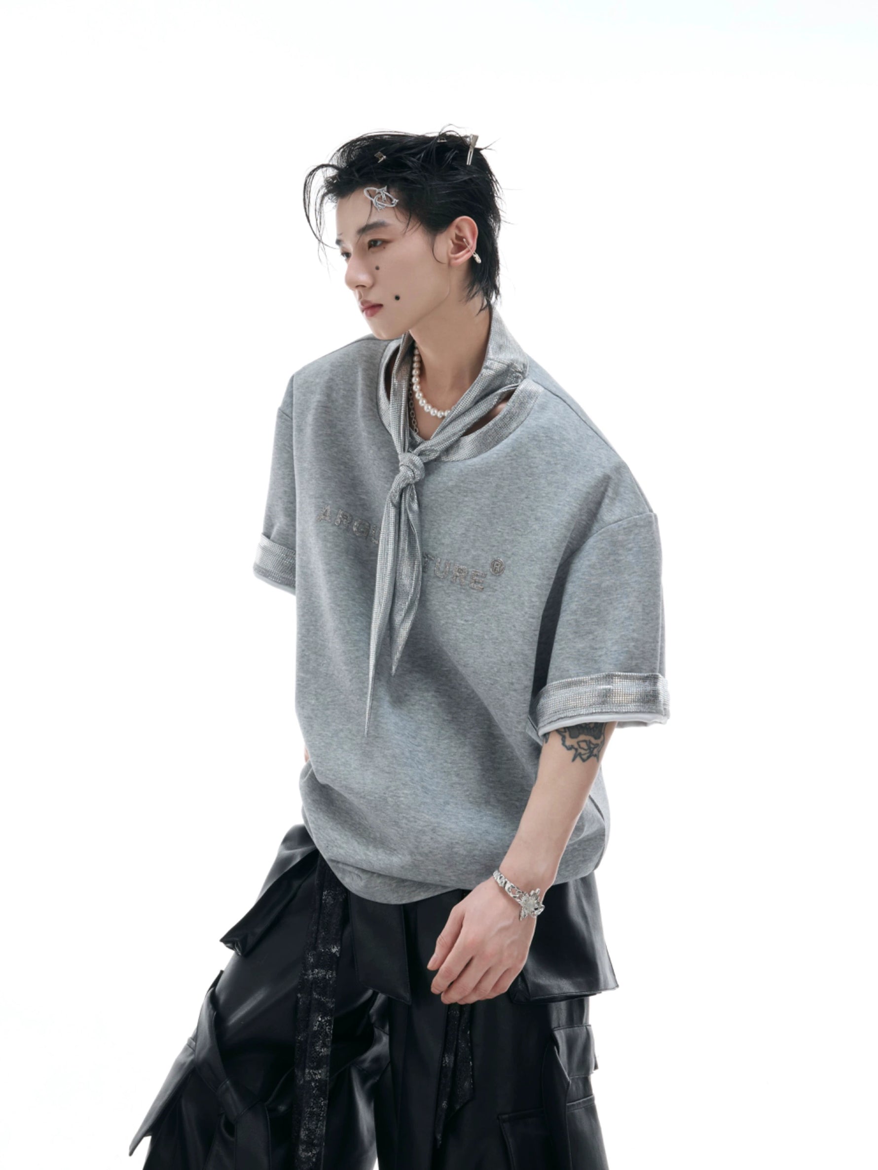 قميص بولو بأكمام قصيرة مطبوعة بالمعادن