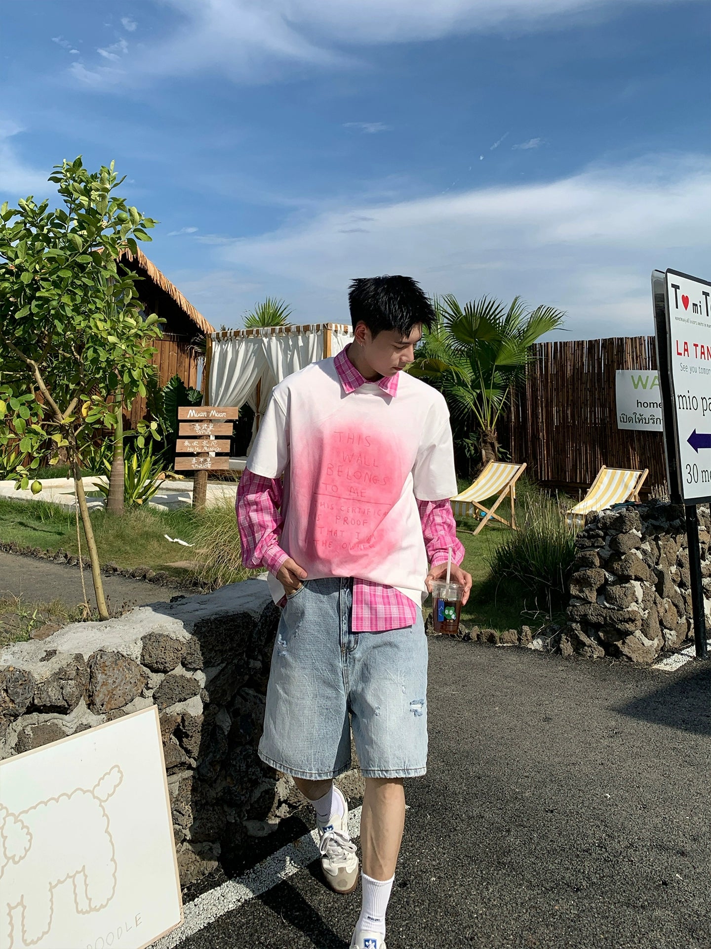 بلوزة قصيرة الأكمام بطباعة حرف كبير