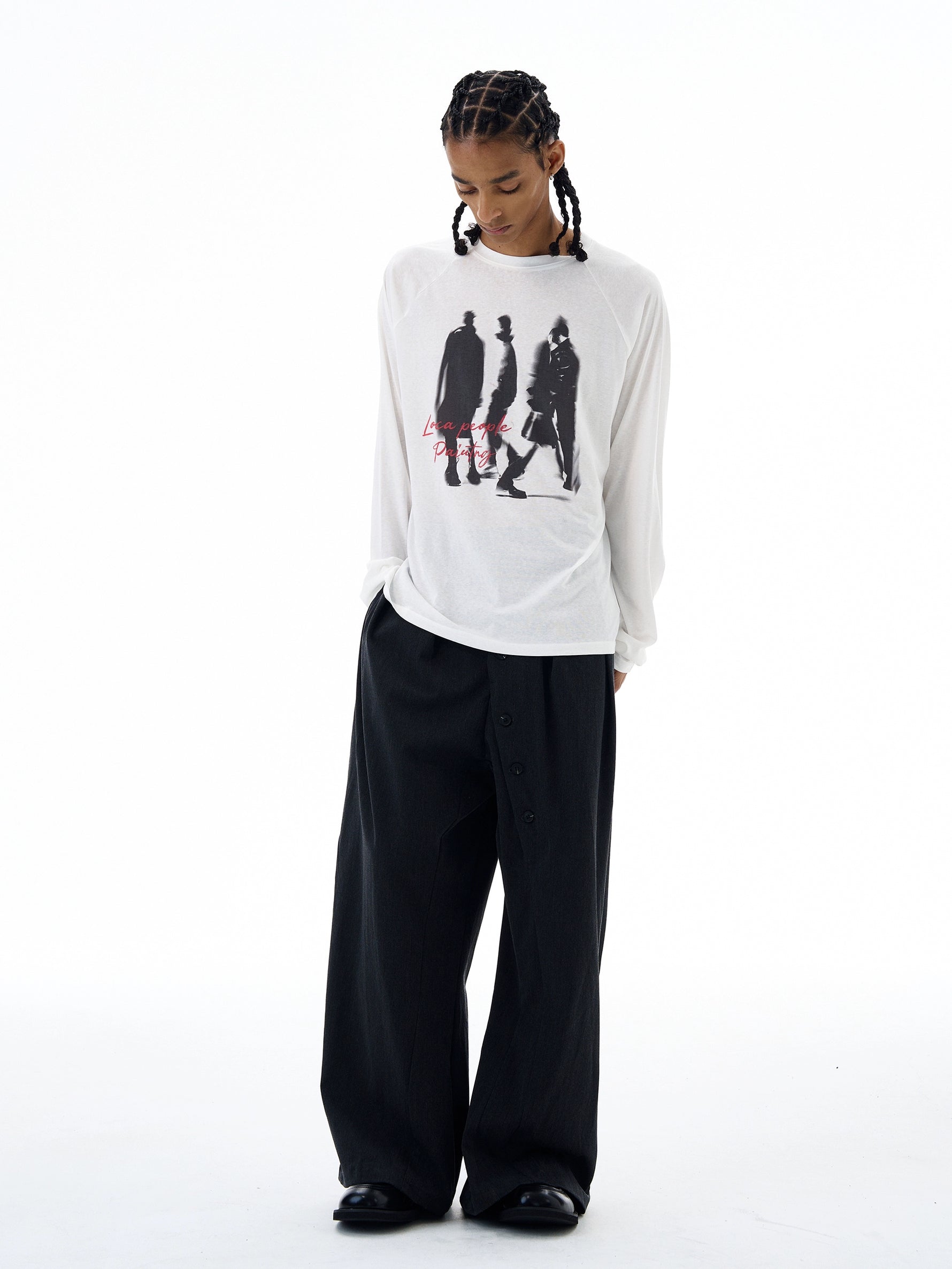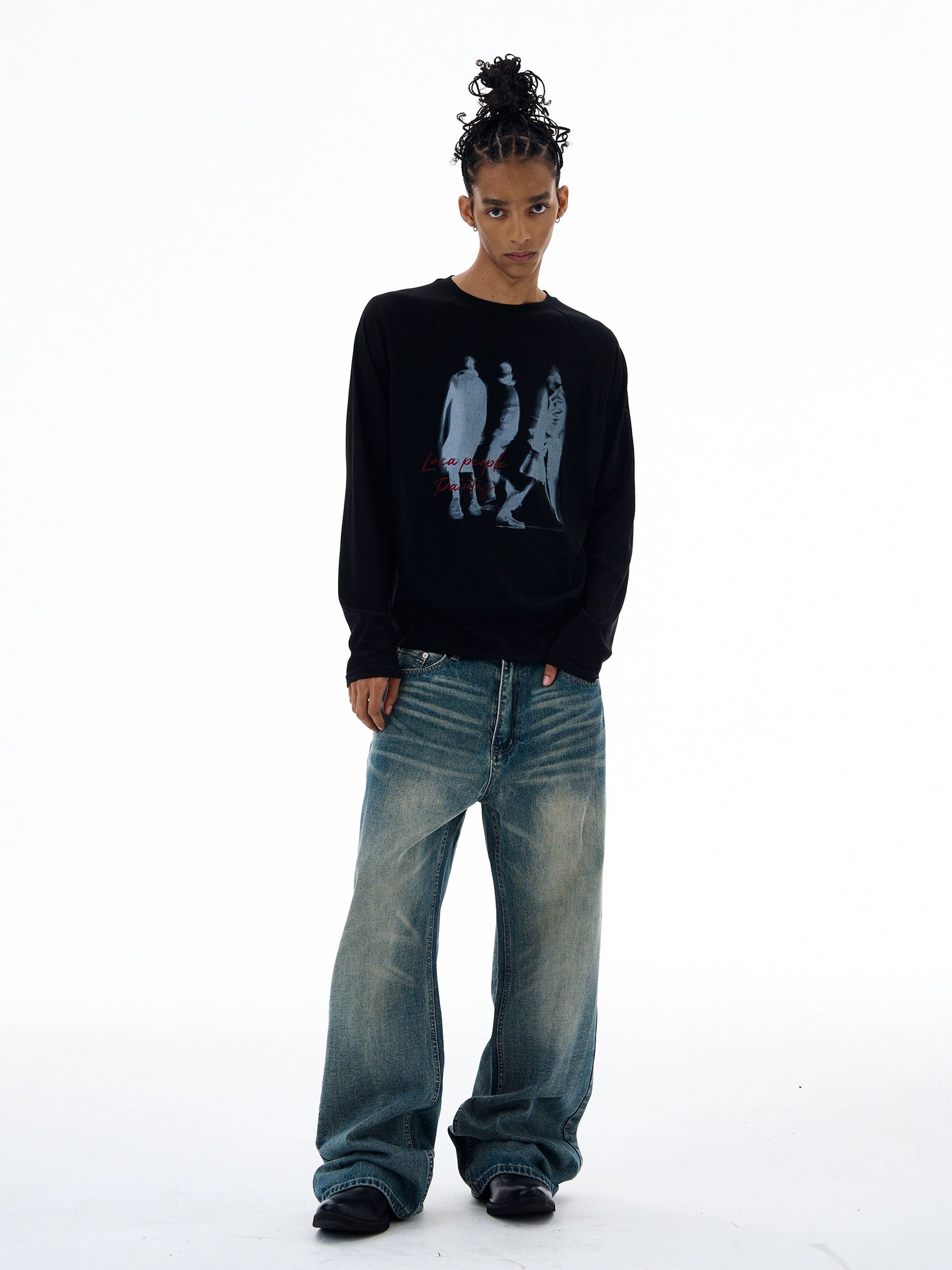 قميص بولو بأكمام طويلة بتصميم جرافيكي رجعي