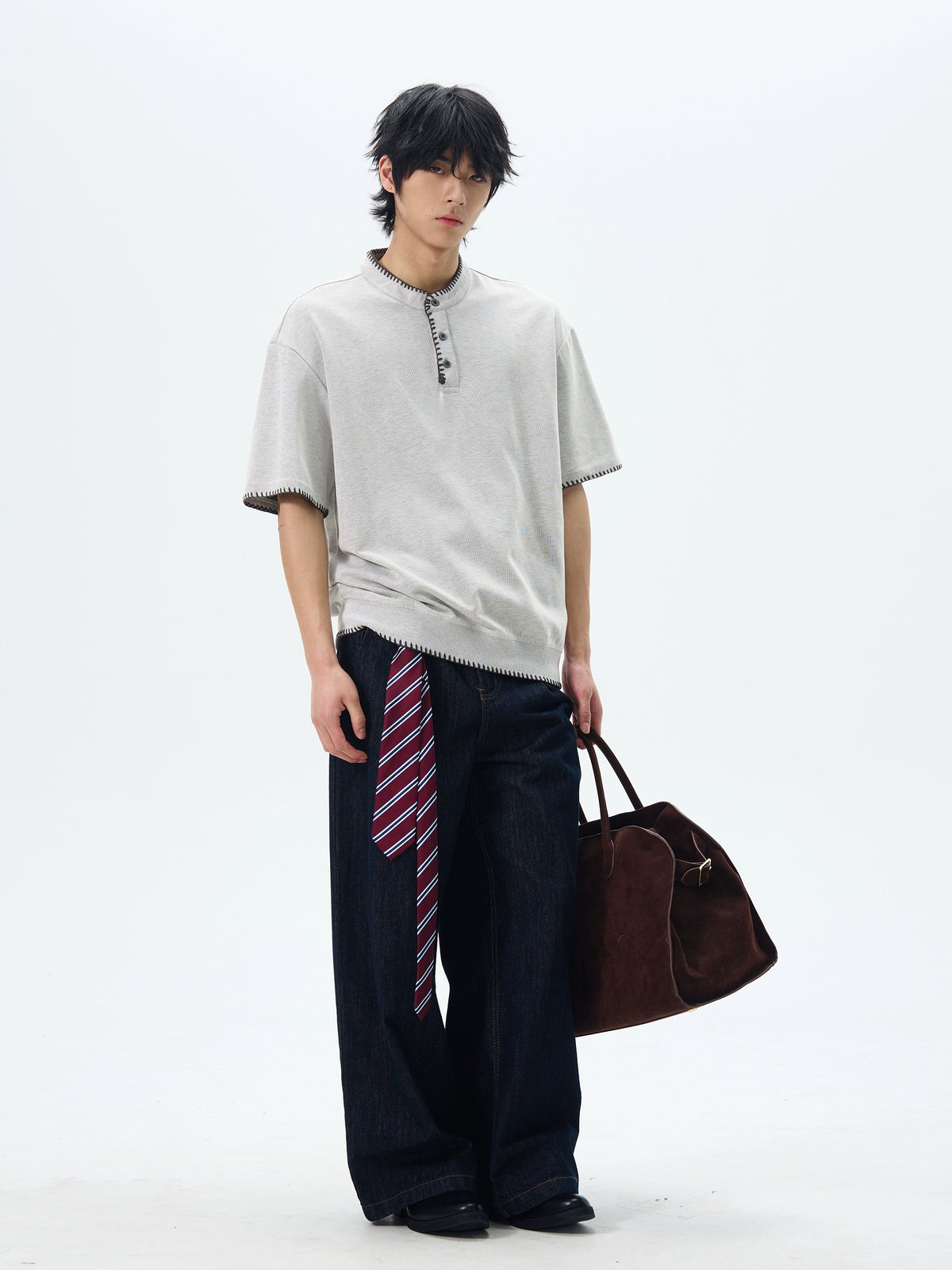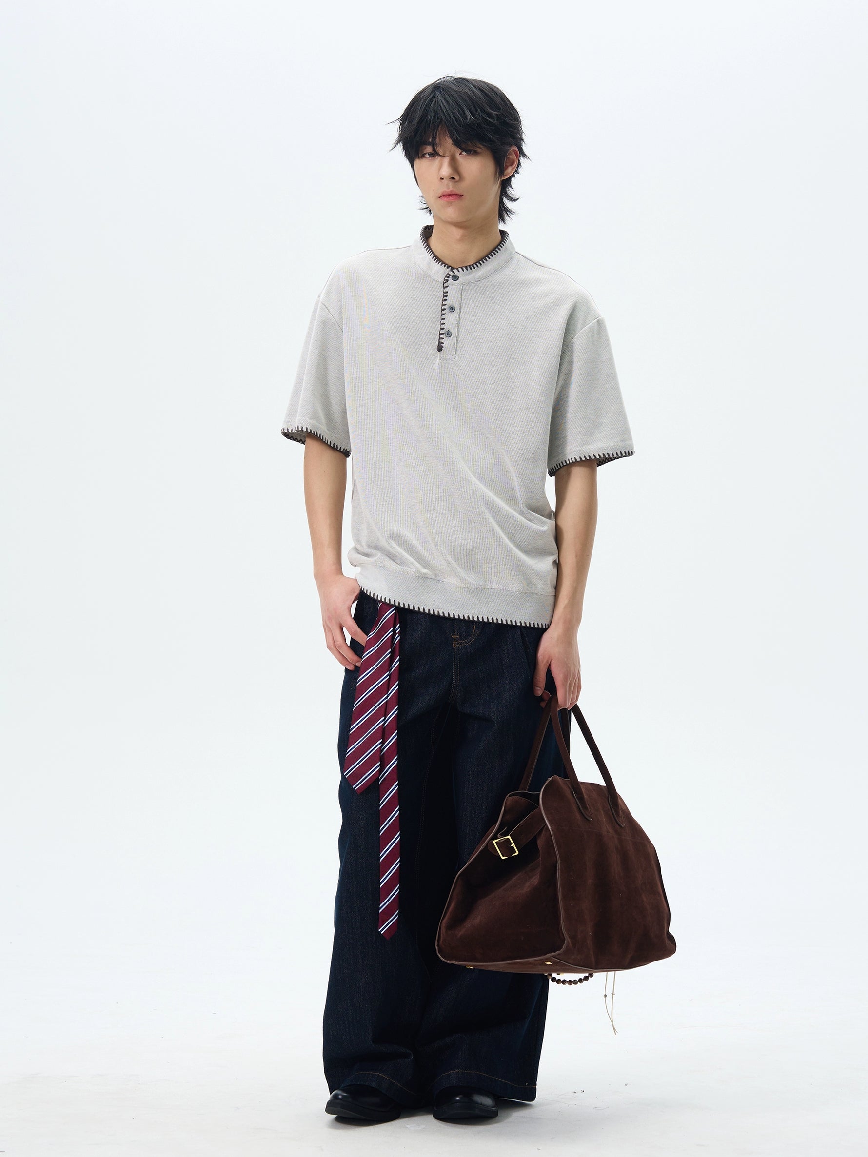 بلوزة هينلي قصيرة الأكمام مصنوعة يدوياً بتصميم عتيق