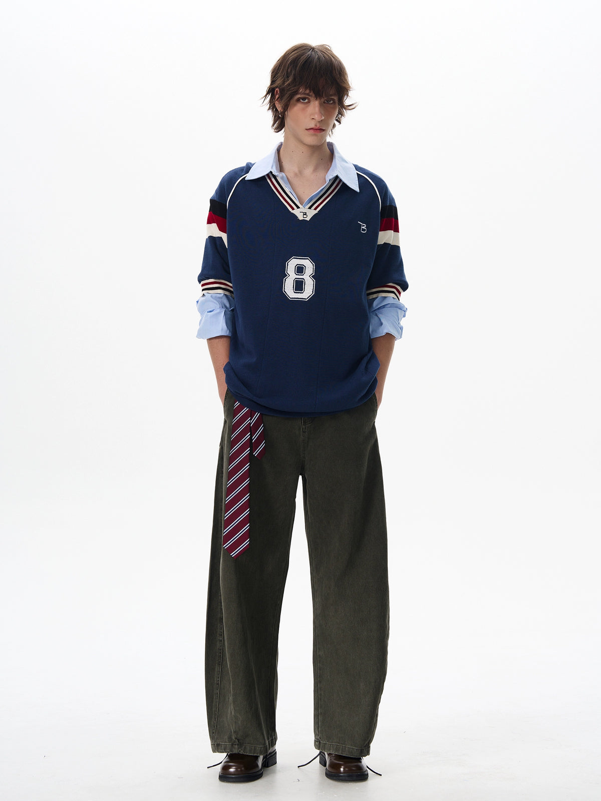 - تصميم رقبة على شكل حرف V مع تطريز حروف