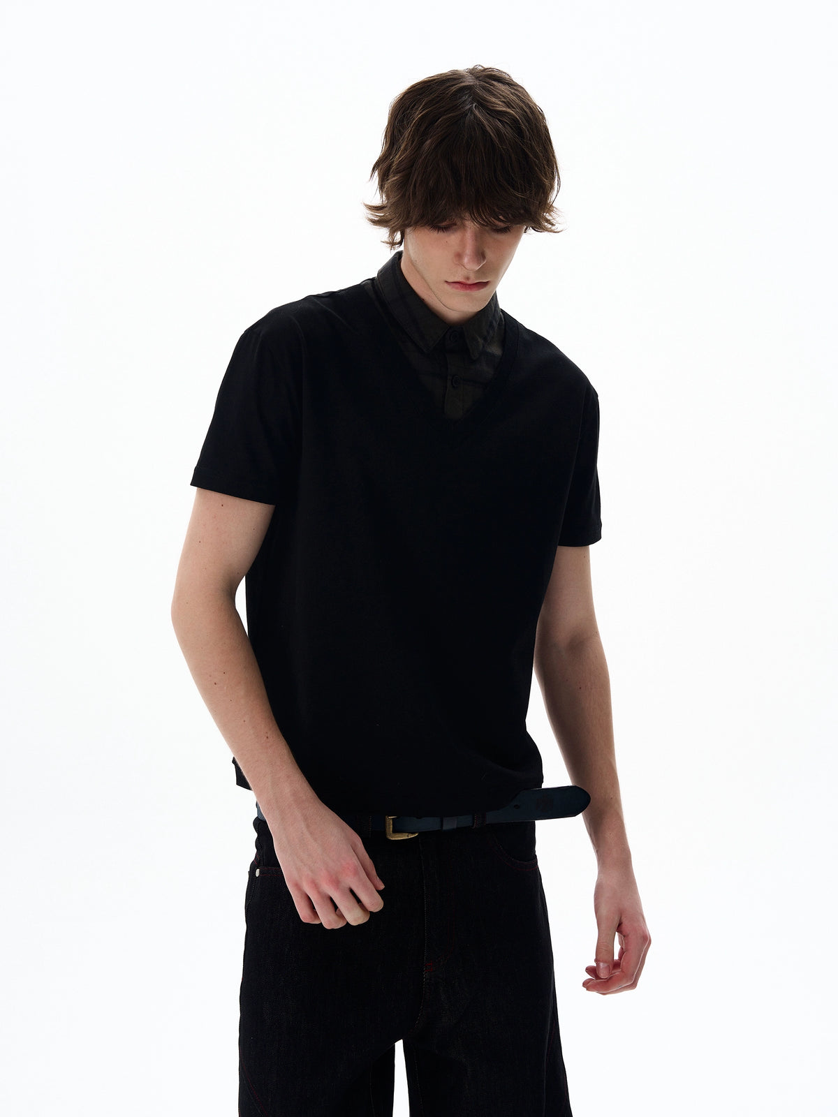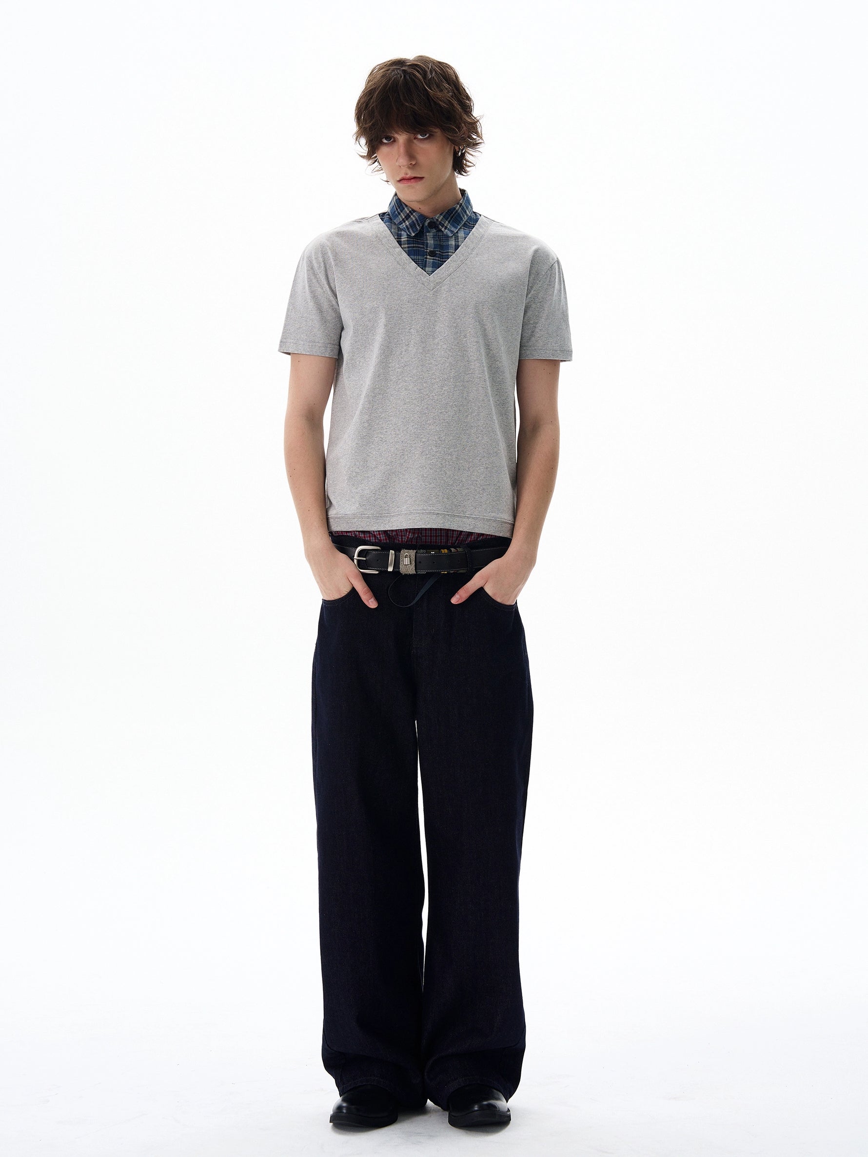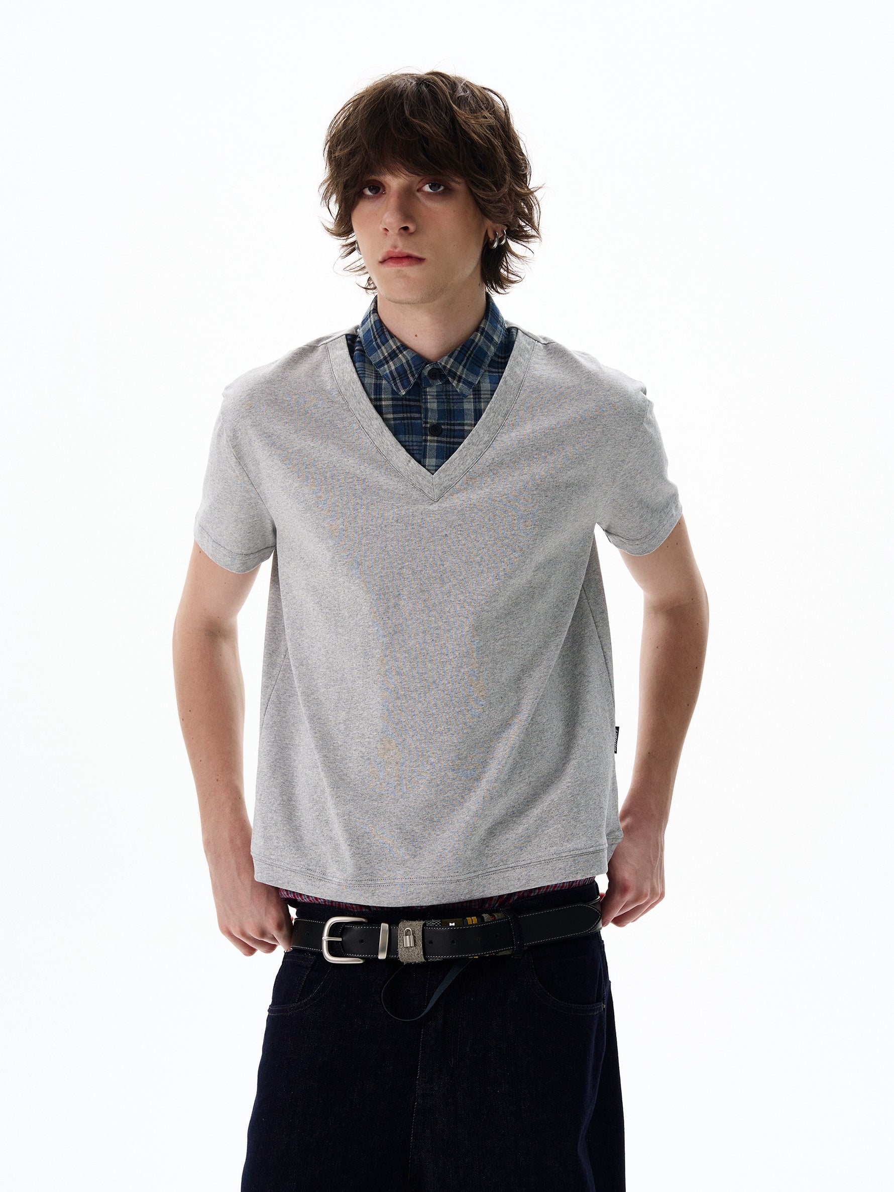 بلوزة قصيرة الأكمام بتصميم V-نيك متعدد الطبقات