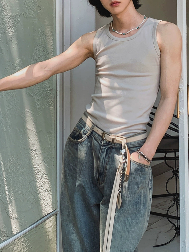 سترة بلا أكمام بتصميم ضيق وفتحة رقبة دائرية