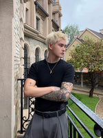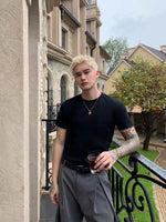 بلوزة قصيرة الأكمام بتصميم ضيق وعارضة
