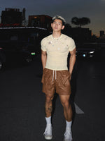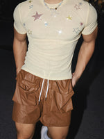 تي شيرت قصير الأكمام مزين بالنجوم بقصة ضيقة