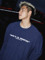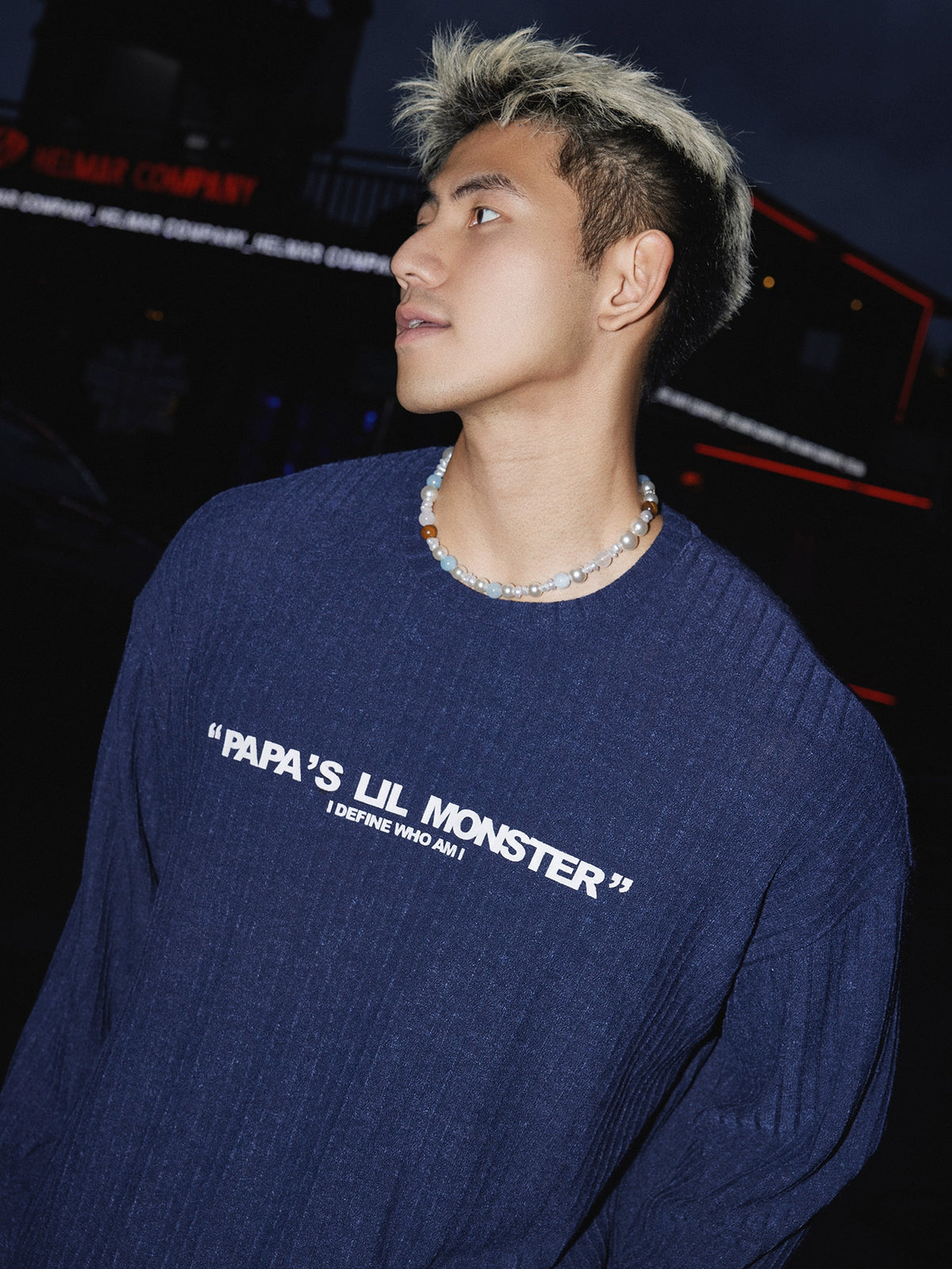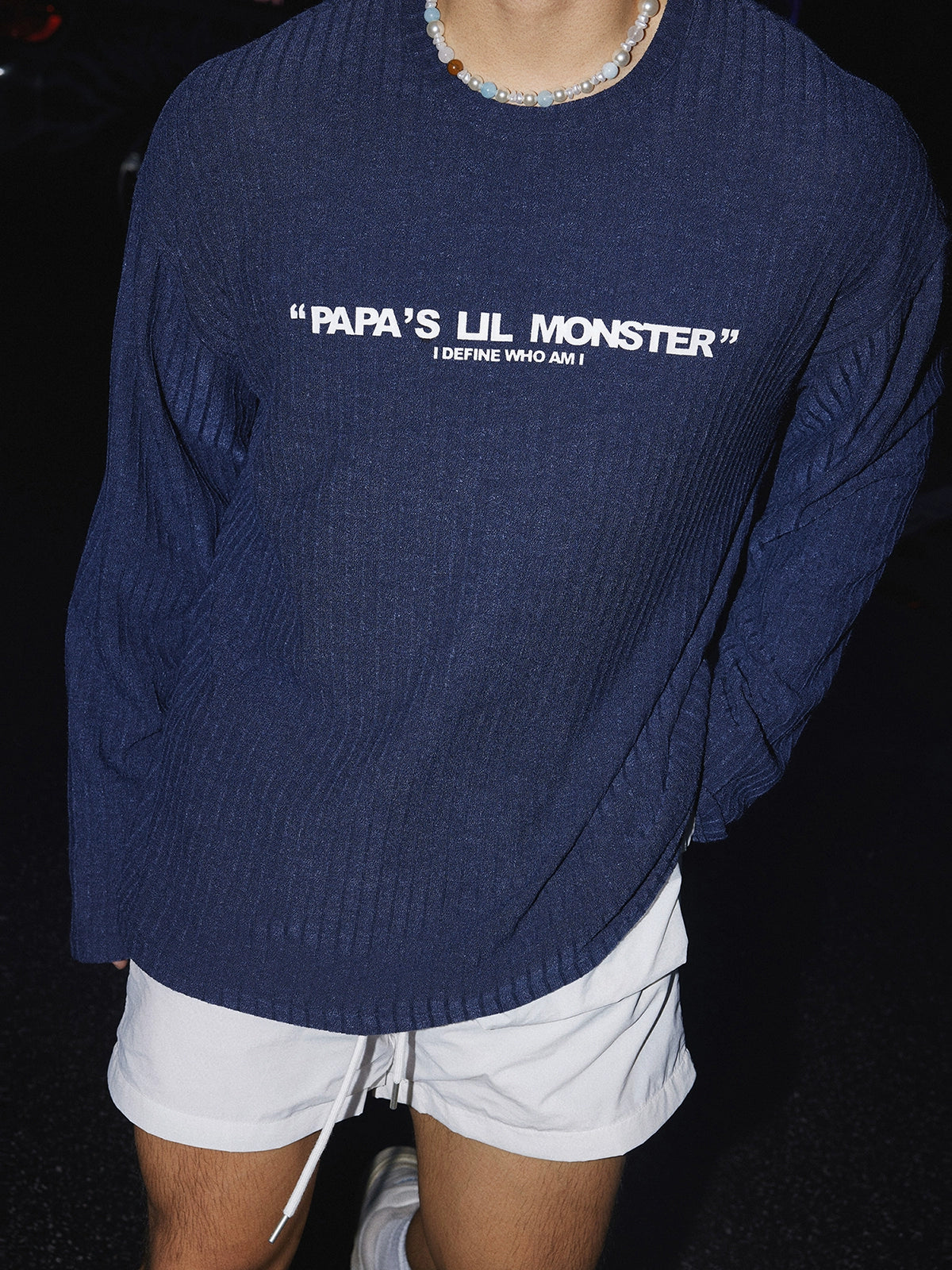سترة بولو بأكمام طويلة بطباعة حروف بنقشة مخططة