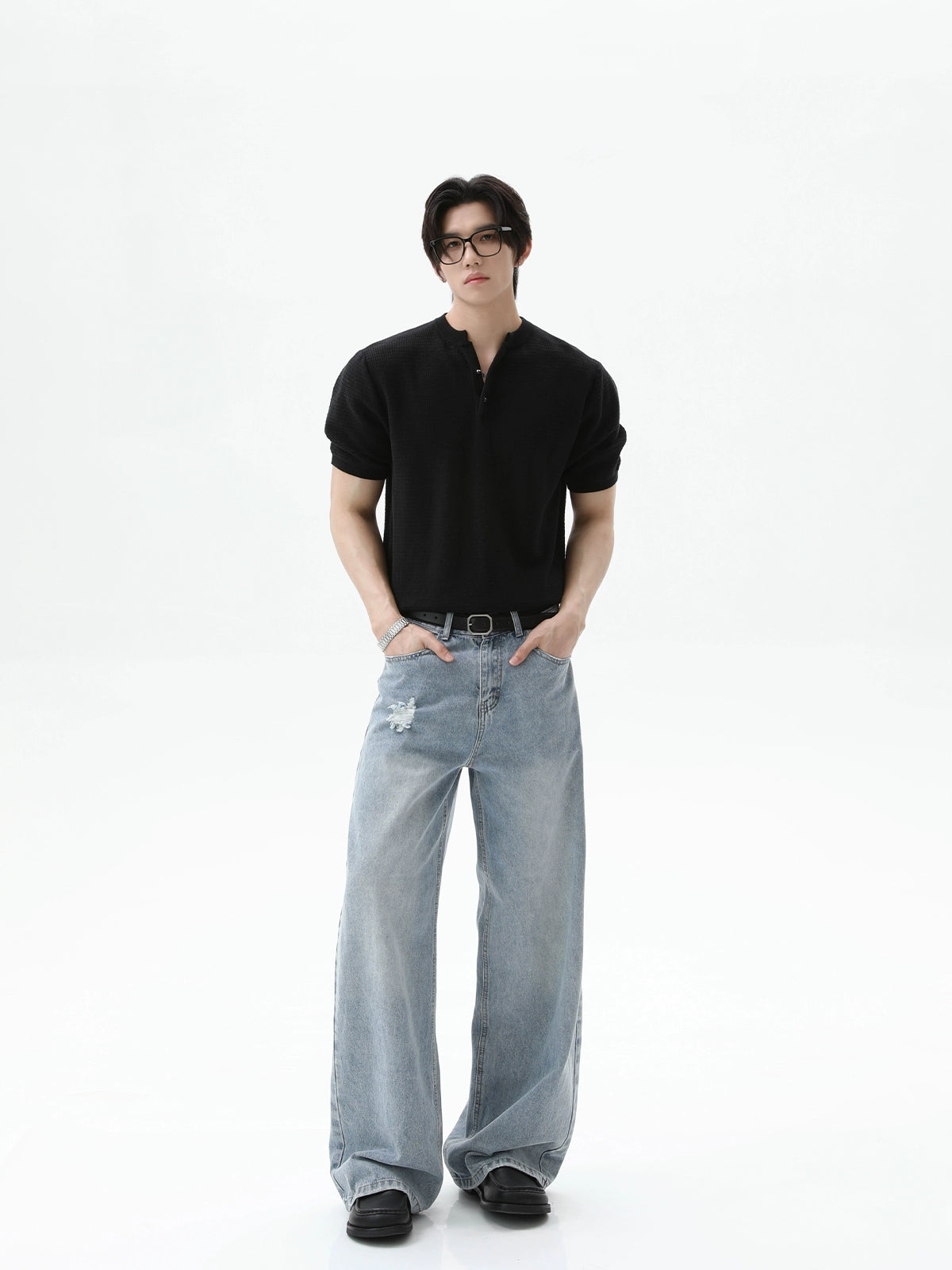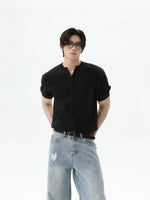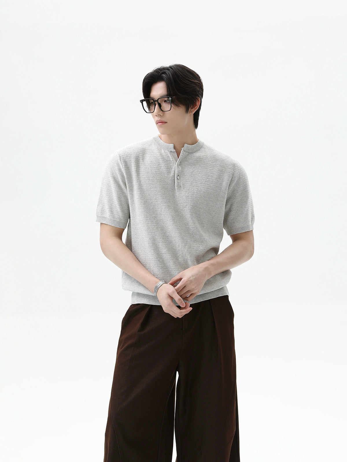 بلوزة قصيرة الأكمام من قماش الوافل كنيت هينلي