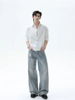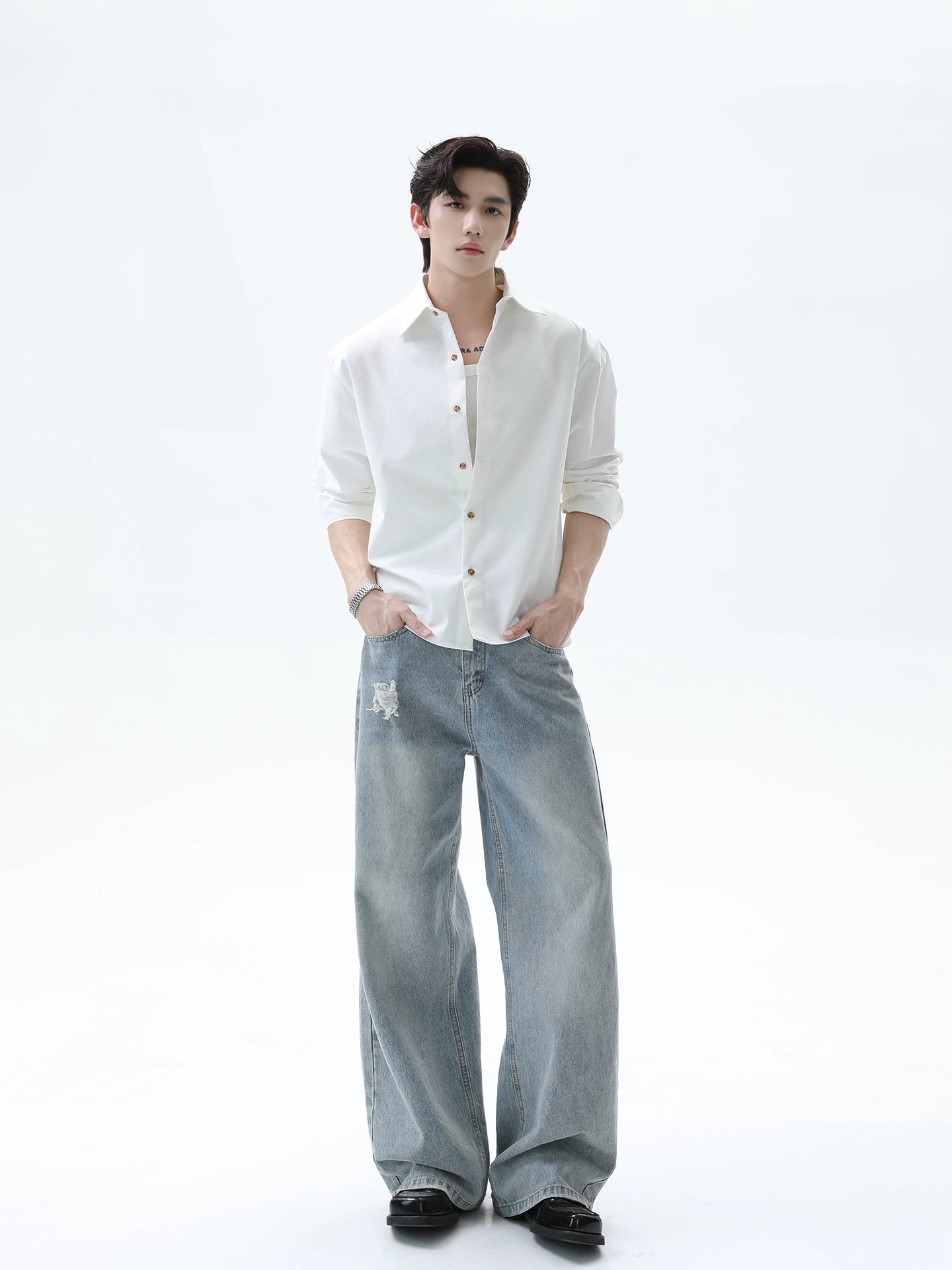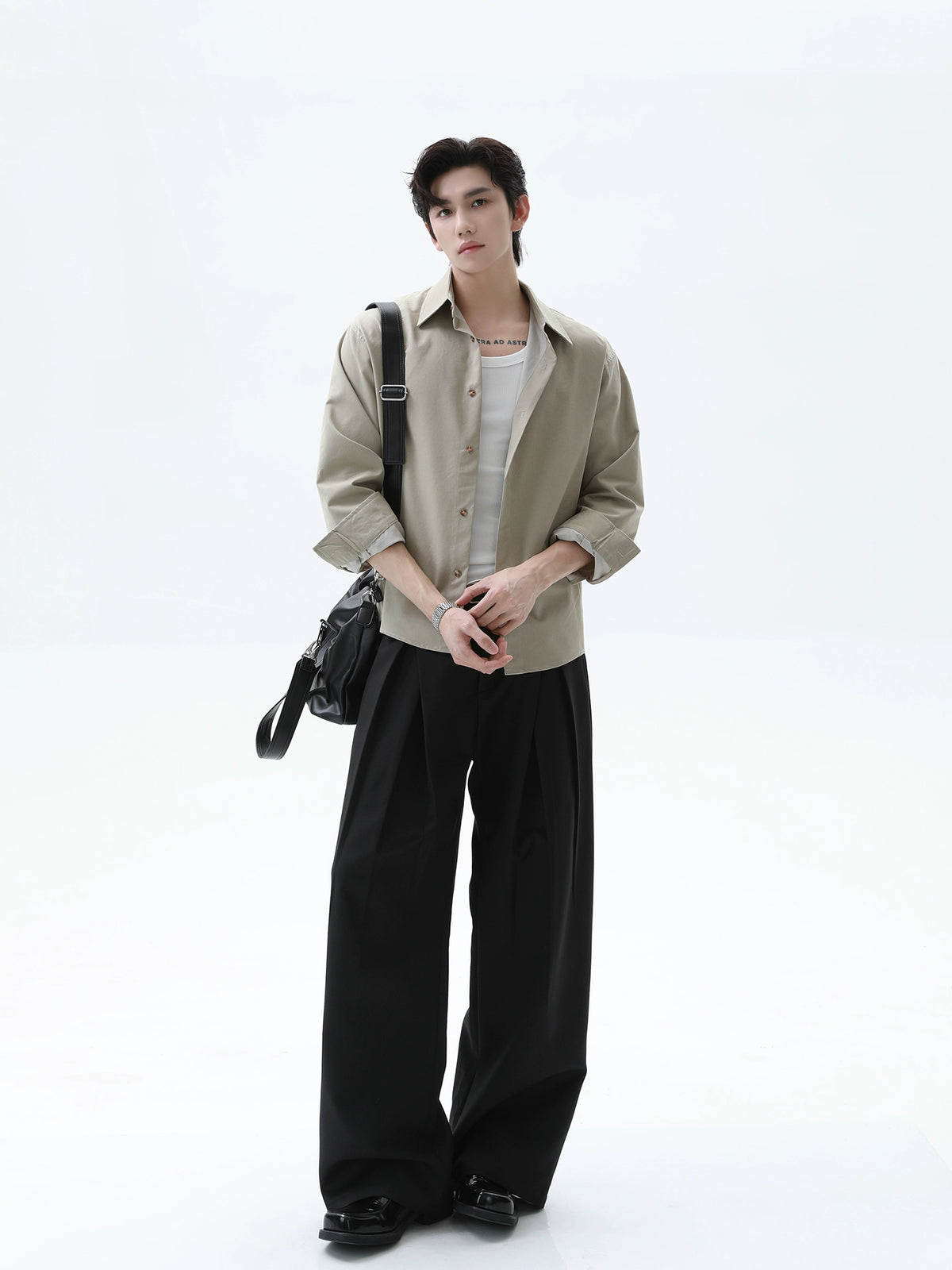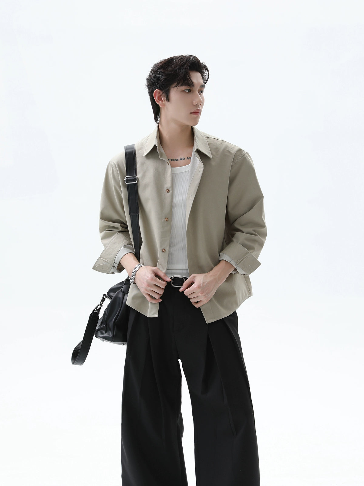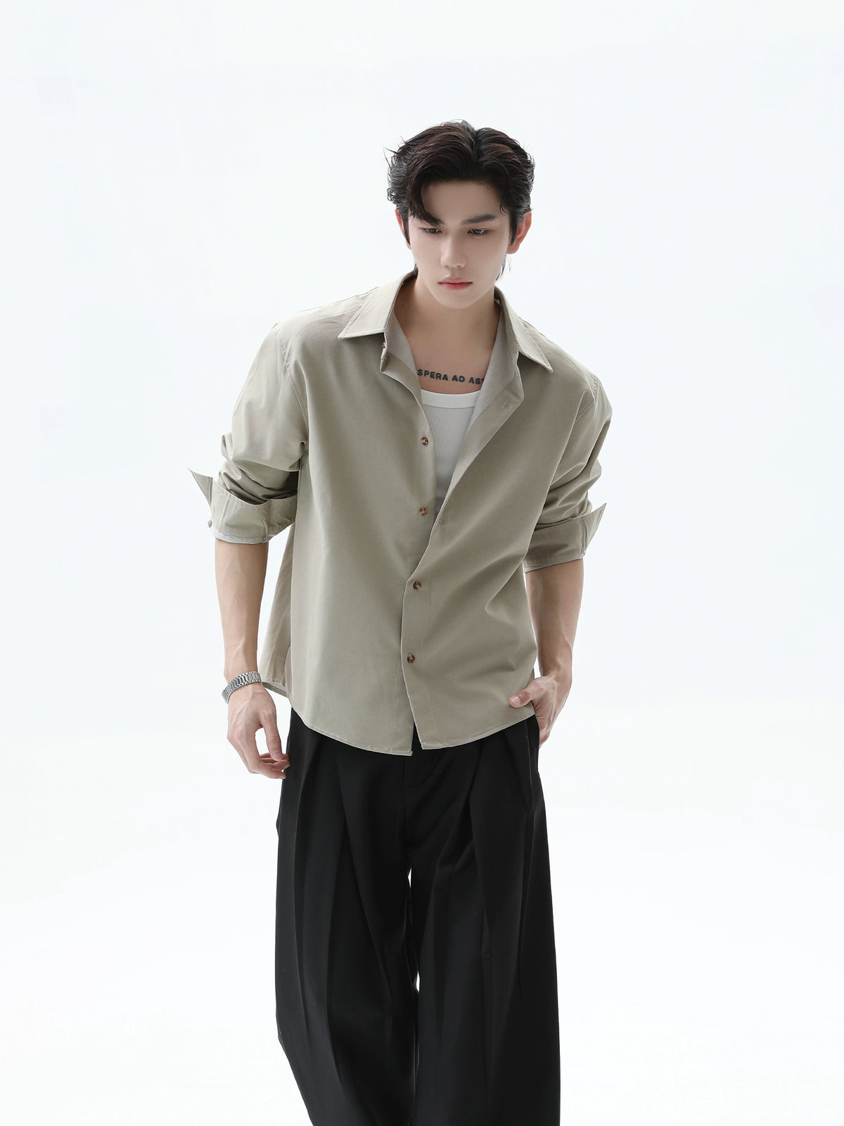 قميص بأكمام طويلة وقصة فضفاضة مع طية صدر