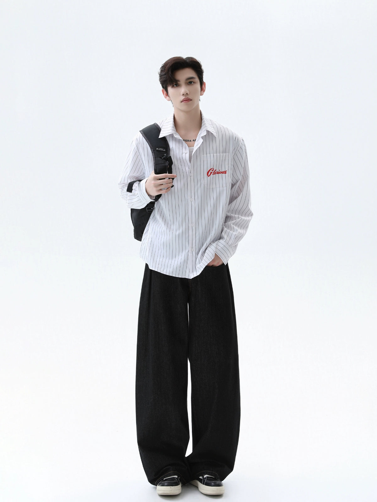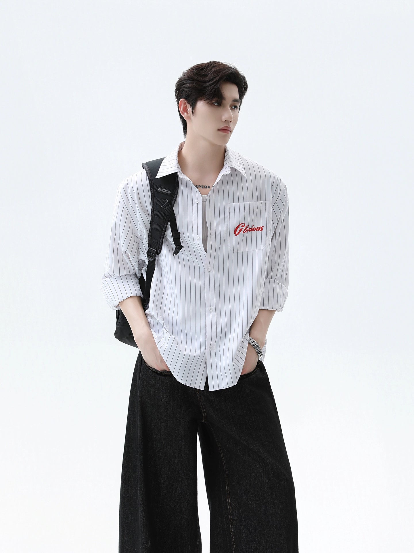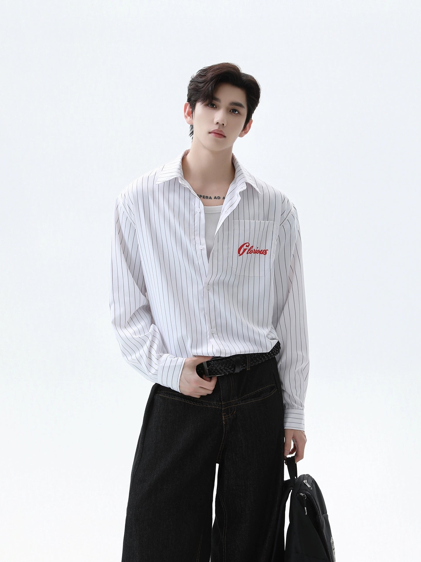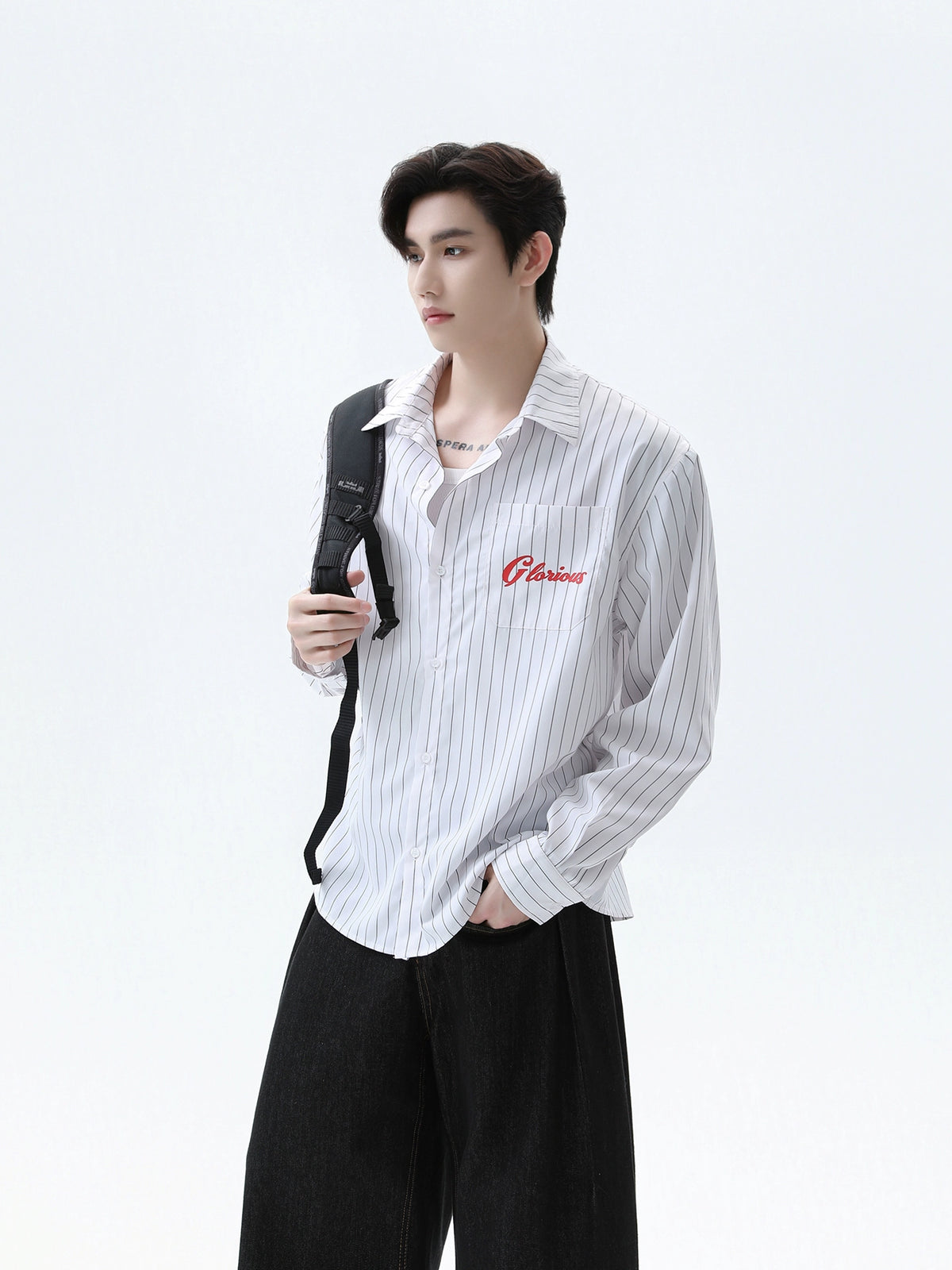 قميص بأكمام طويلة بطبعة مخططة على الياقة