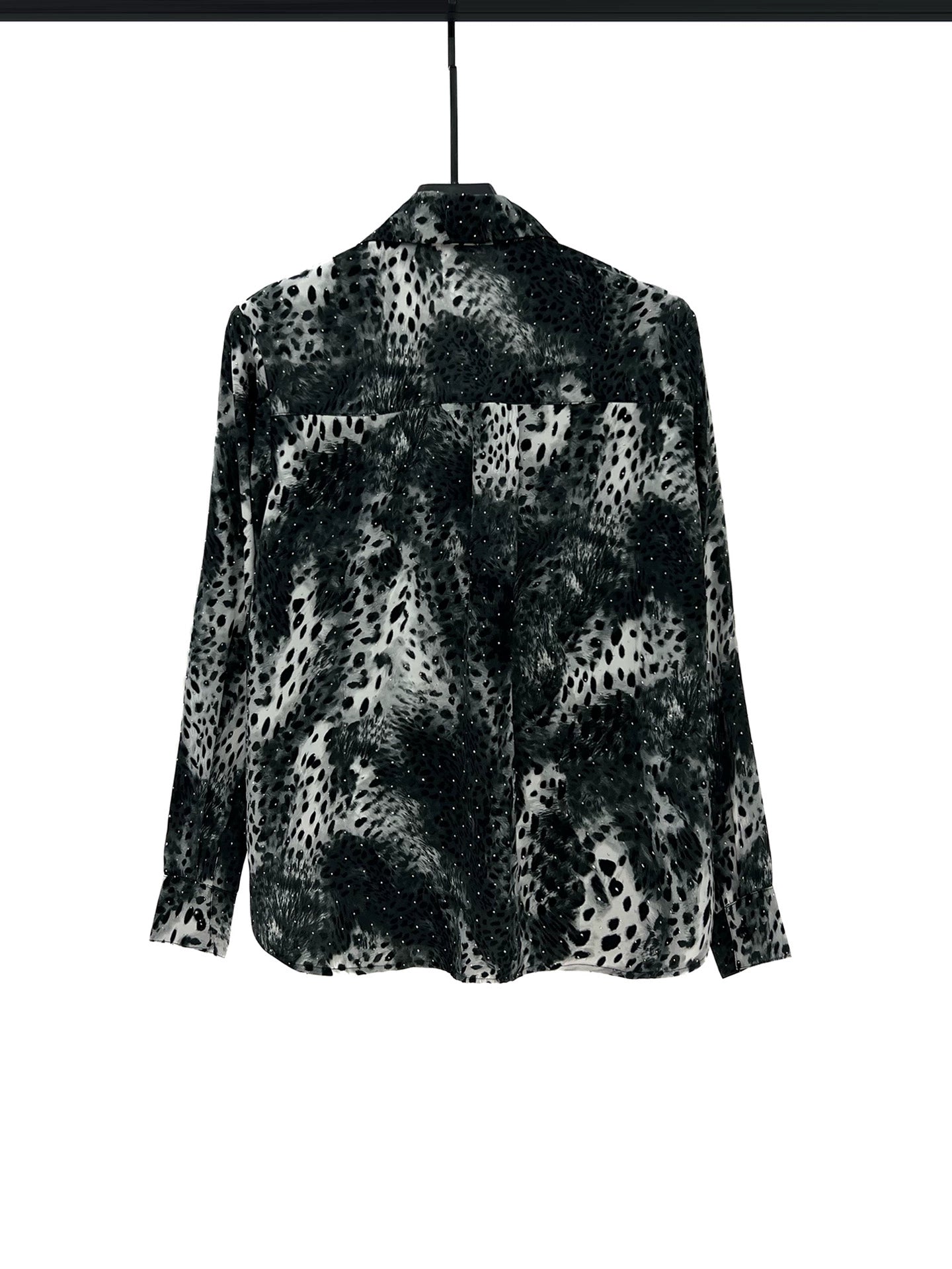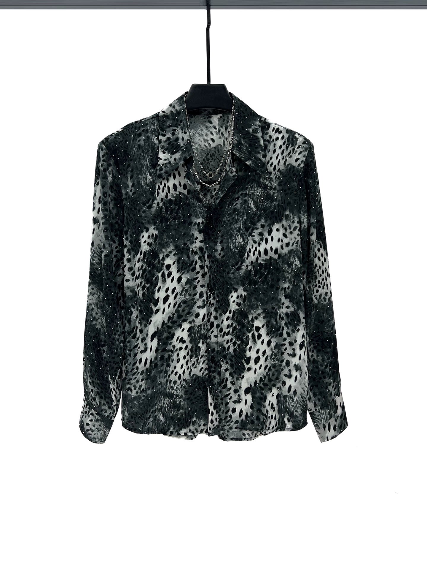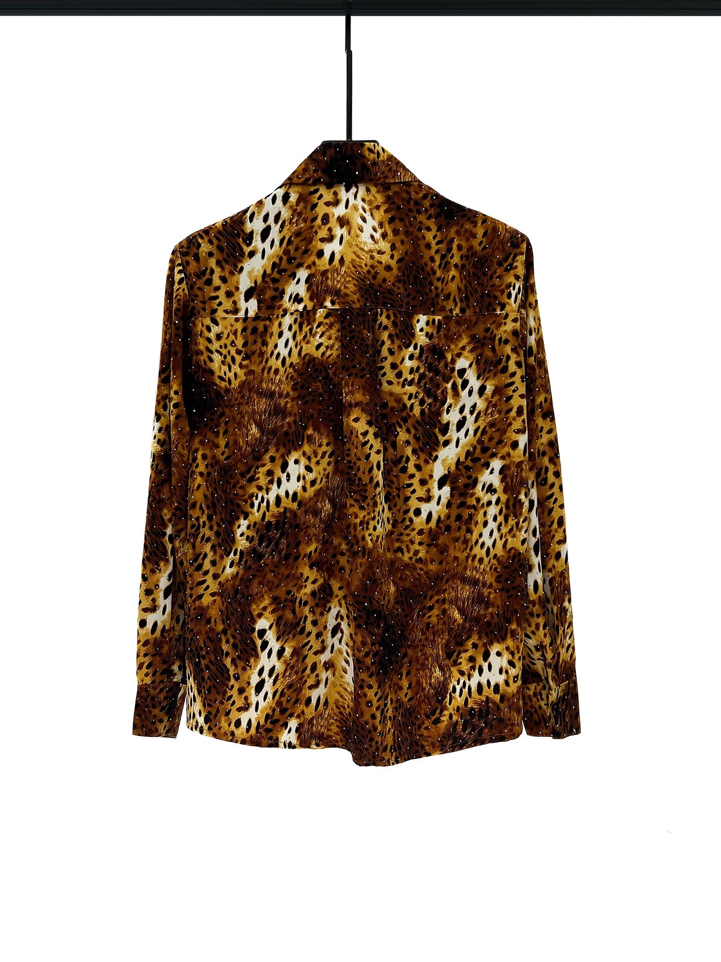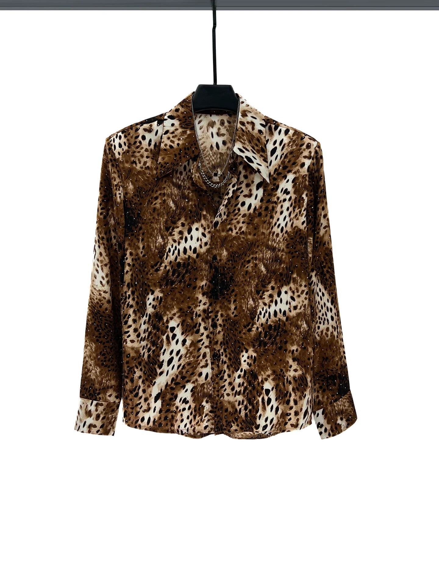 قميص فضفاض بأكمام طويلة بنقشة الفهد