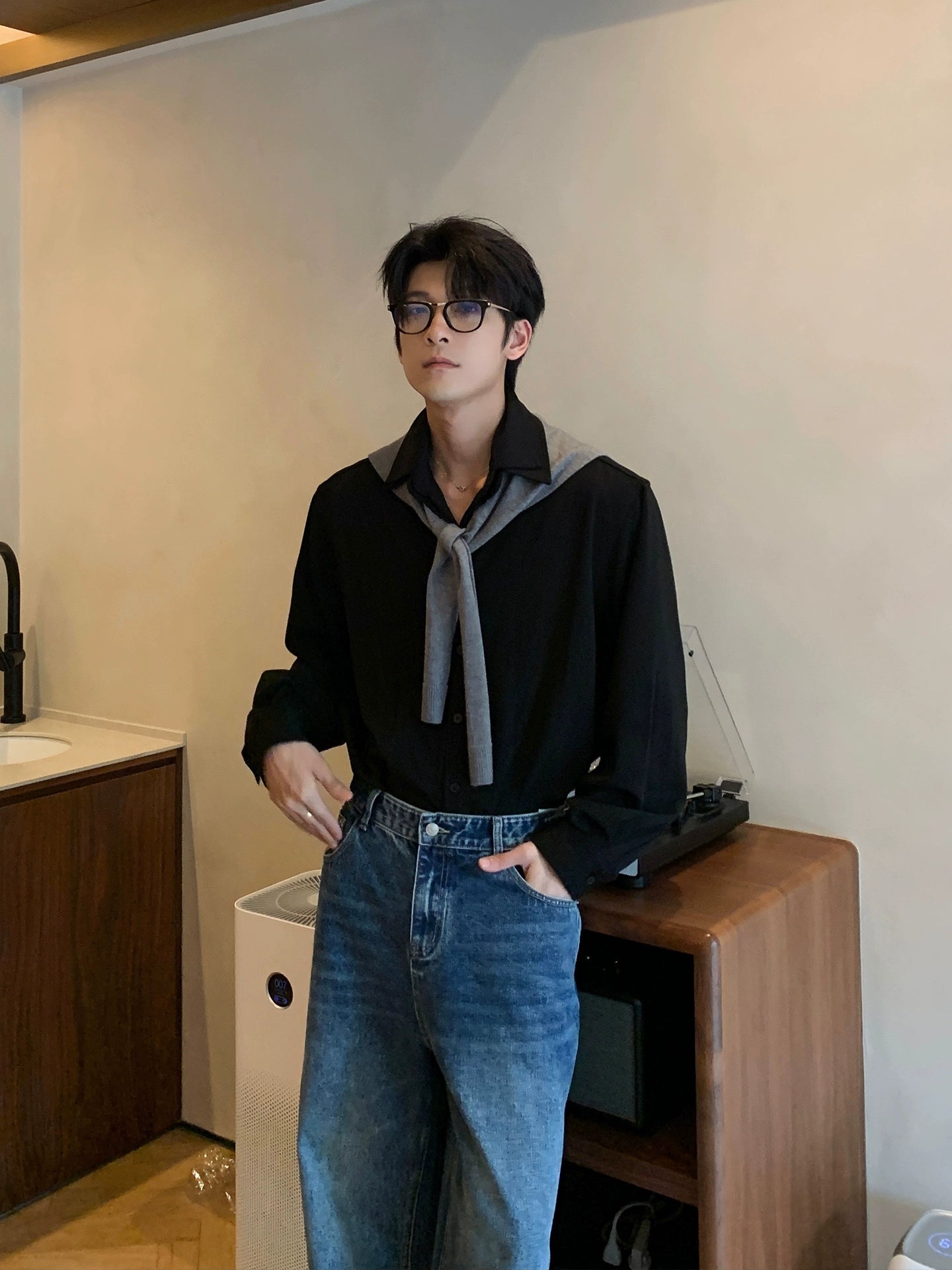 قميص بأكمام طويلة فضفاضة وسروال
