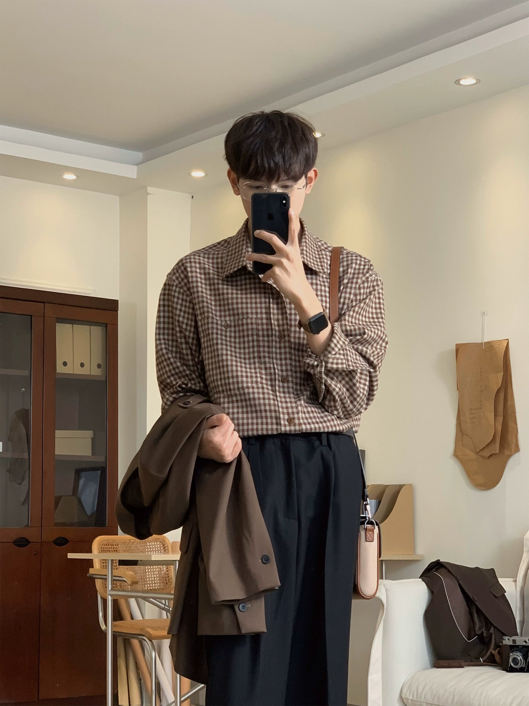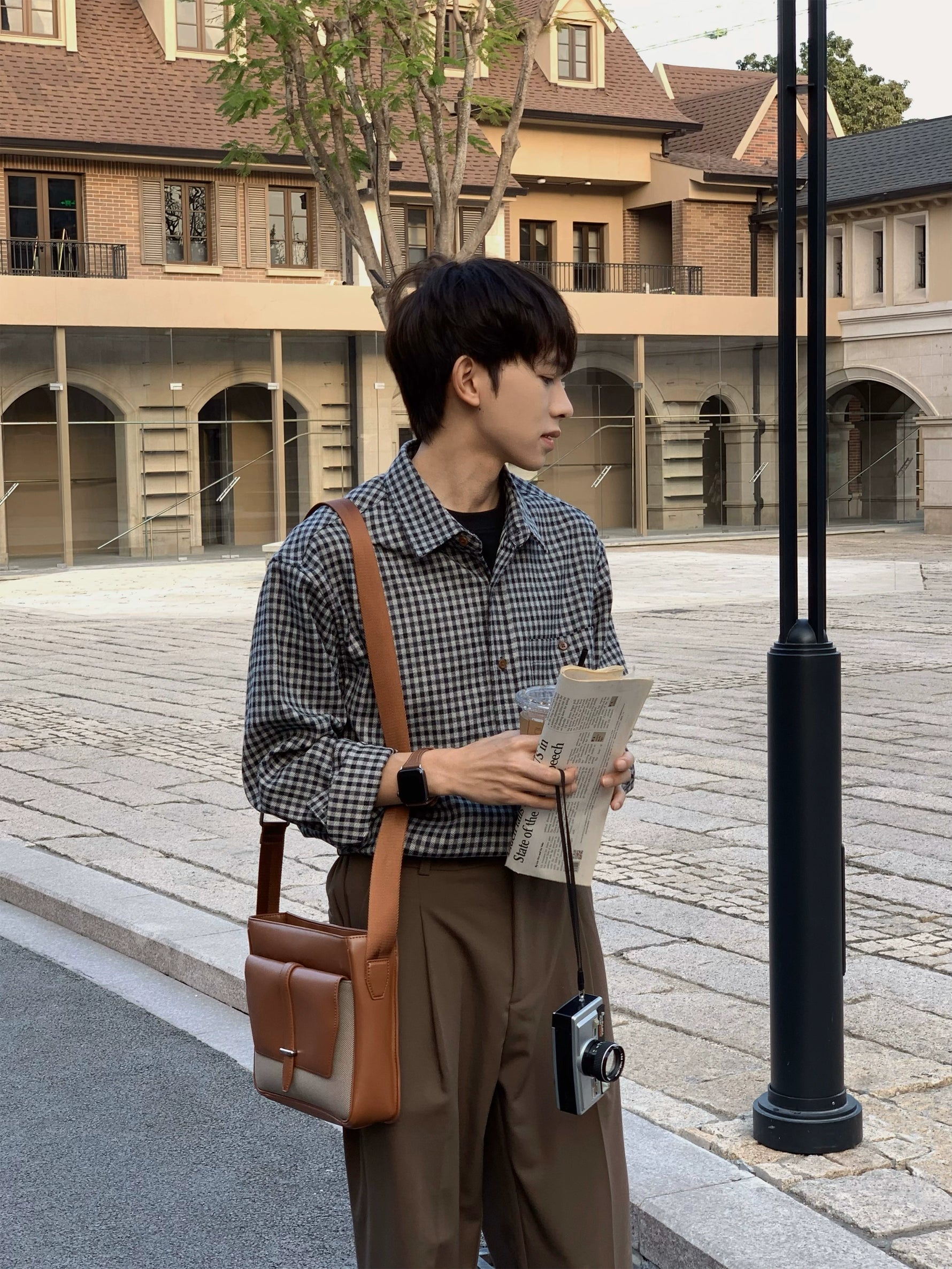 قميص كاجوال مزخرف على شكل مربعات بأسلوب ريترو