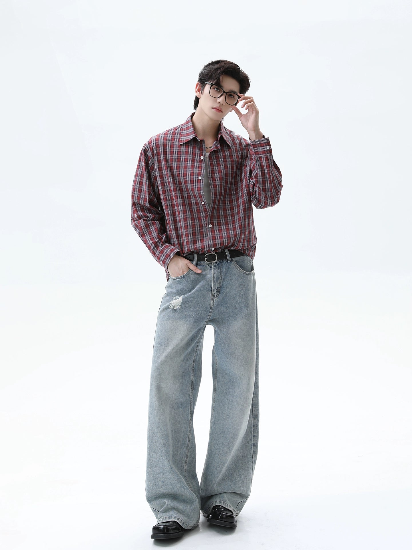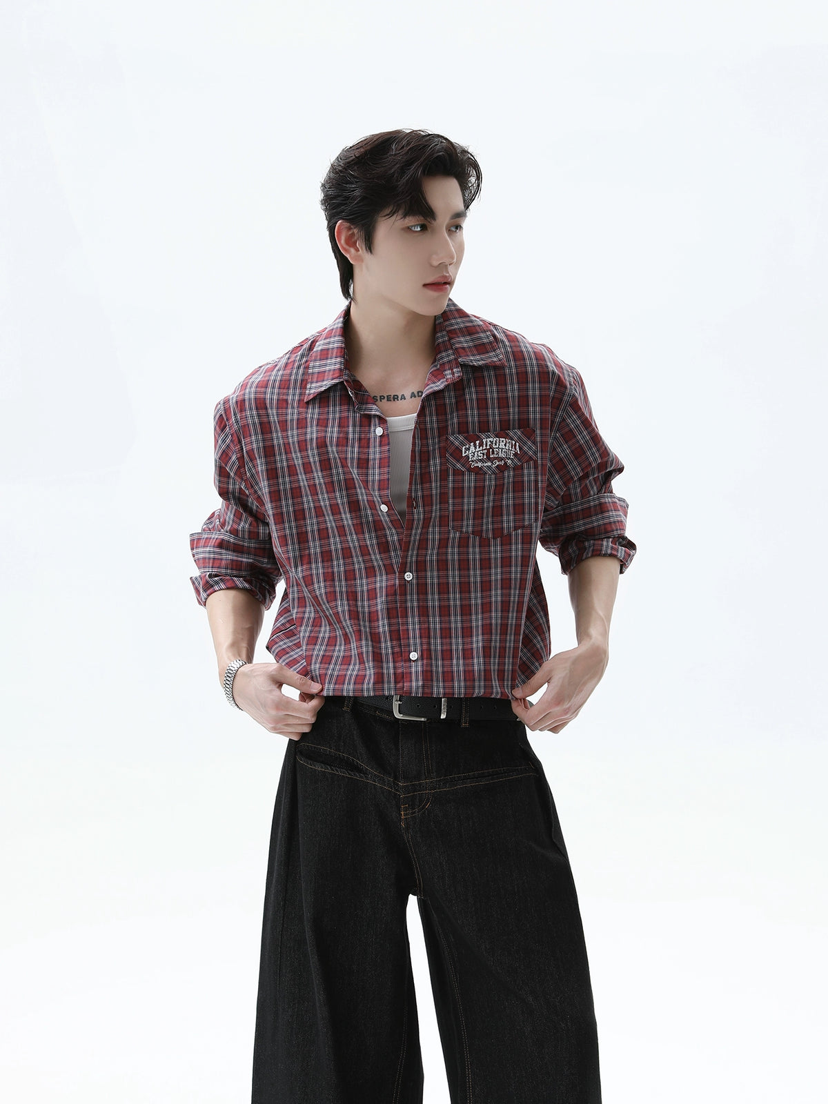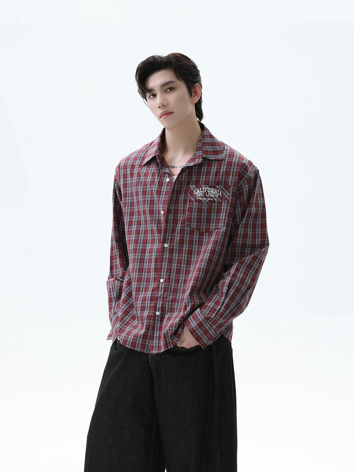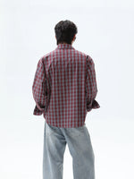 قميص بأكمام طويلة فضفاض بنمط مربعات