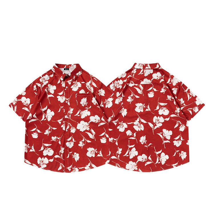 قميص كاجوال قصير الأكمام بنقشة زهور