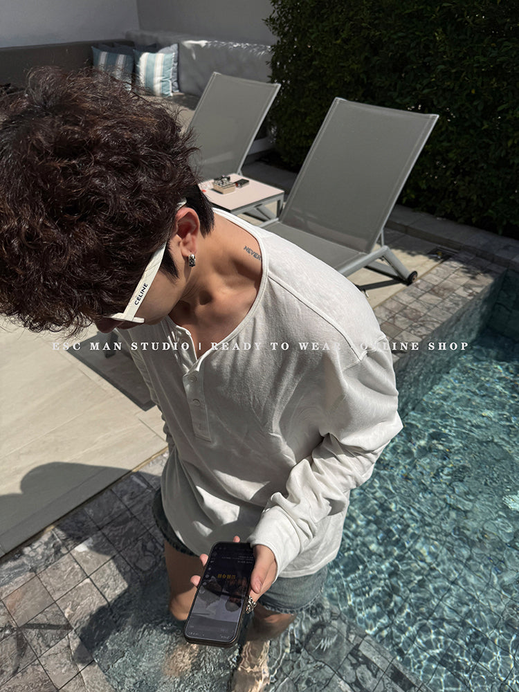 قميص هينري كولار بولو ذو الأكمام الطويلة