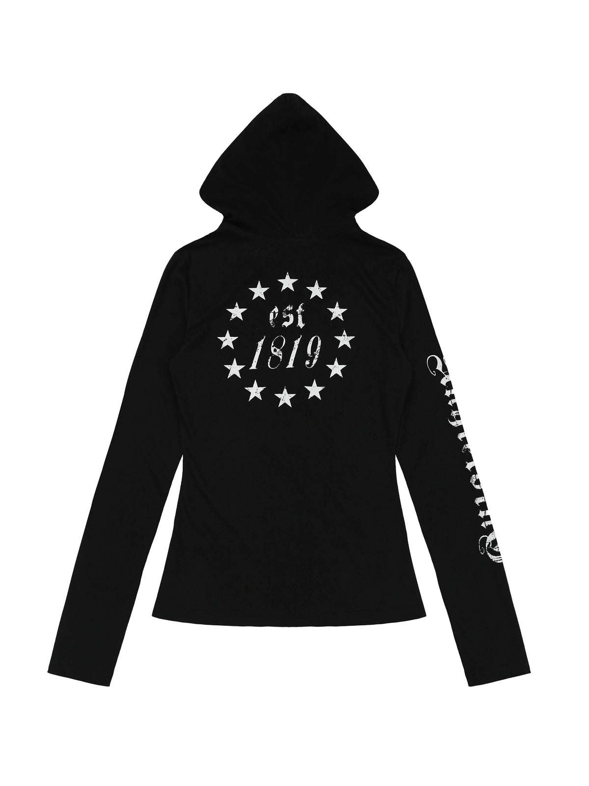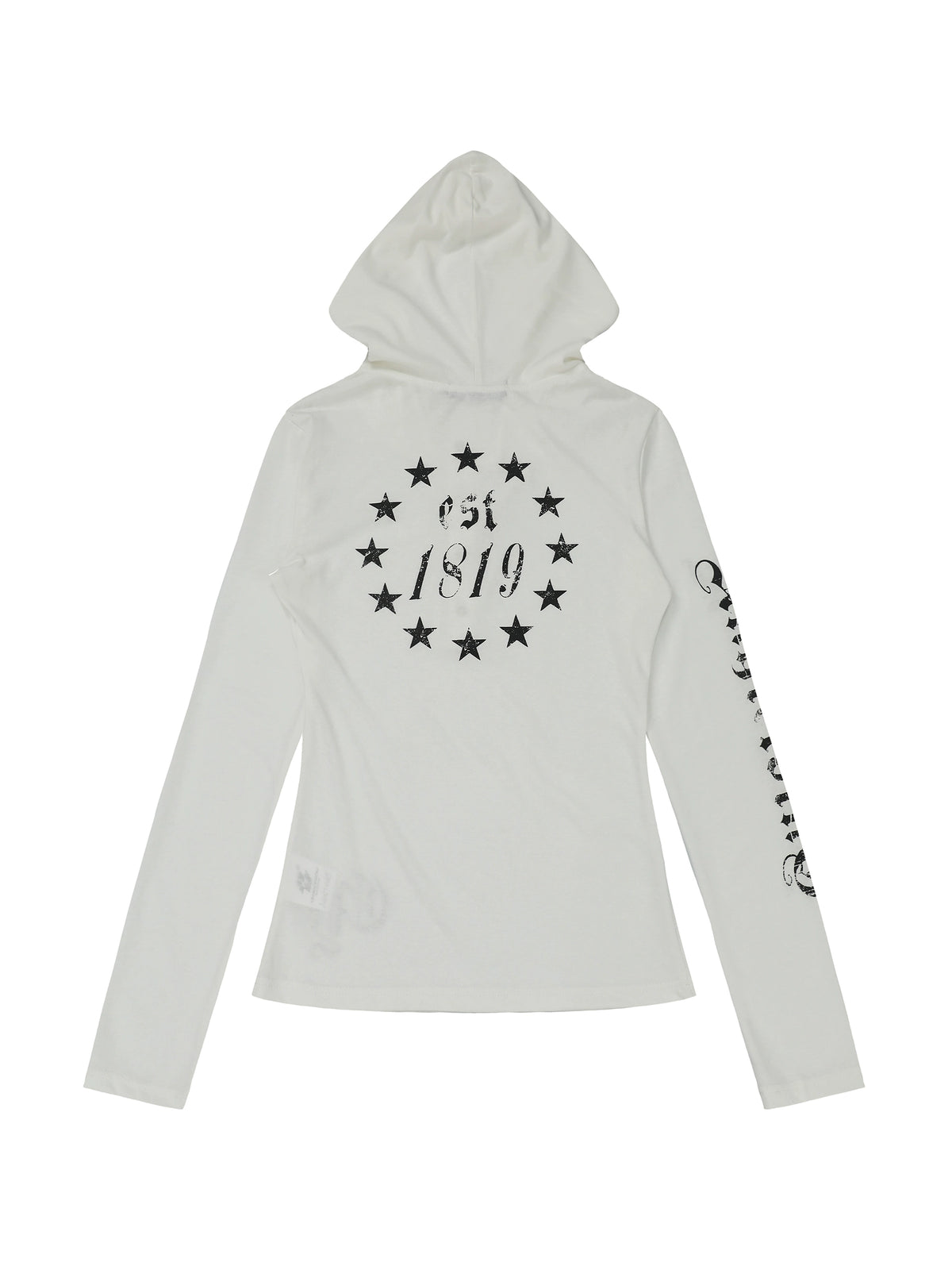 بلوزة تيرتل نك ذات أكمام طويلة وغطاء رأس مع رسومات