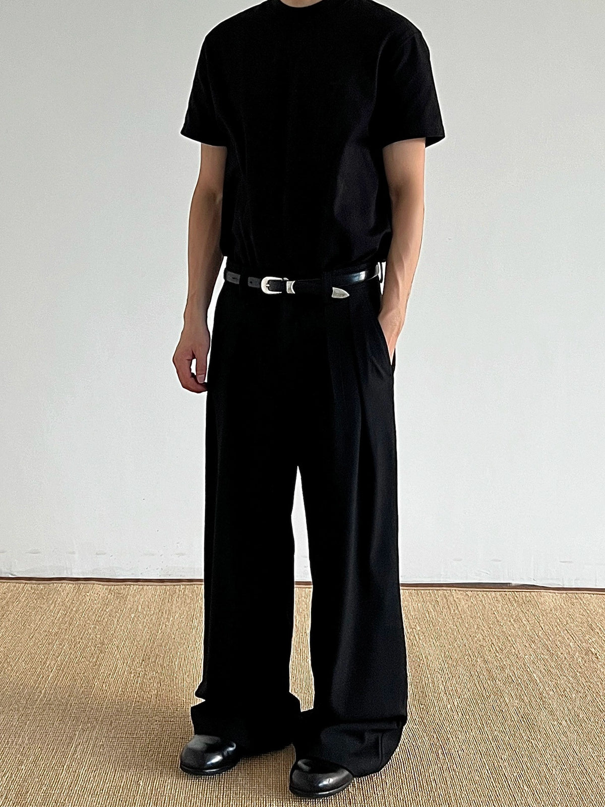 بنطلون كاجوال مستقيم فضفاض مطوي