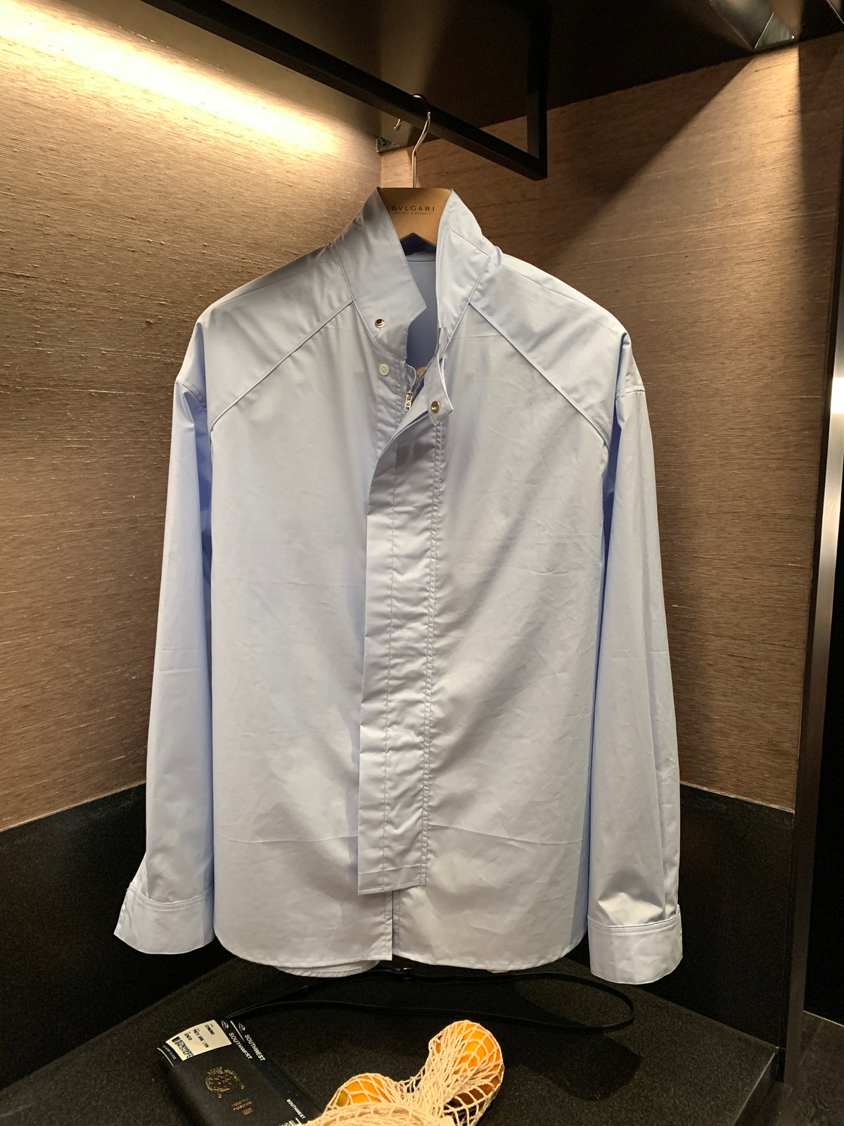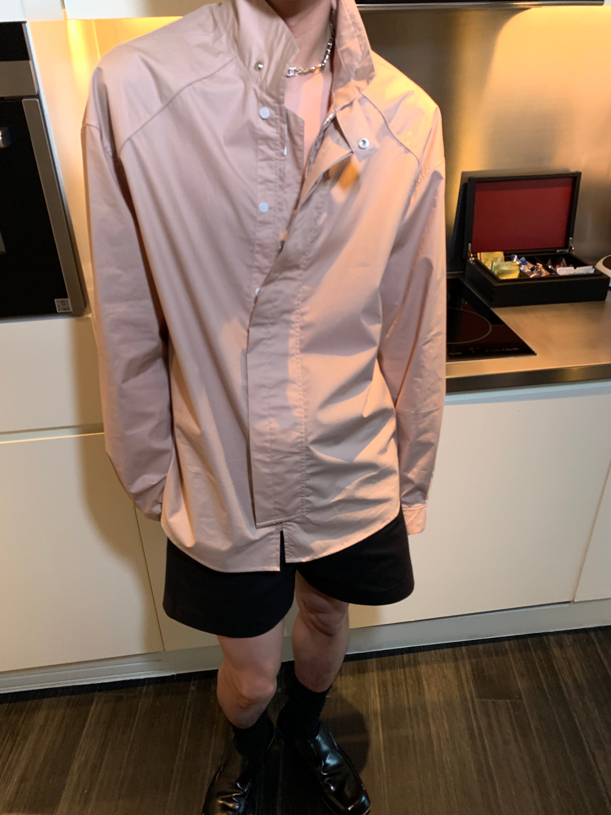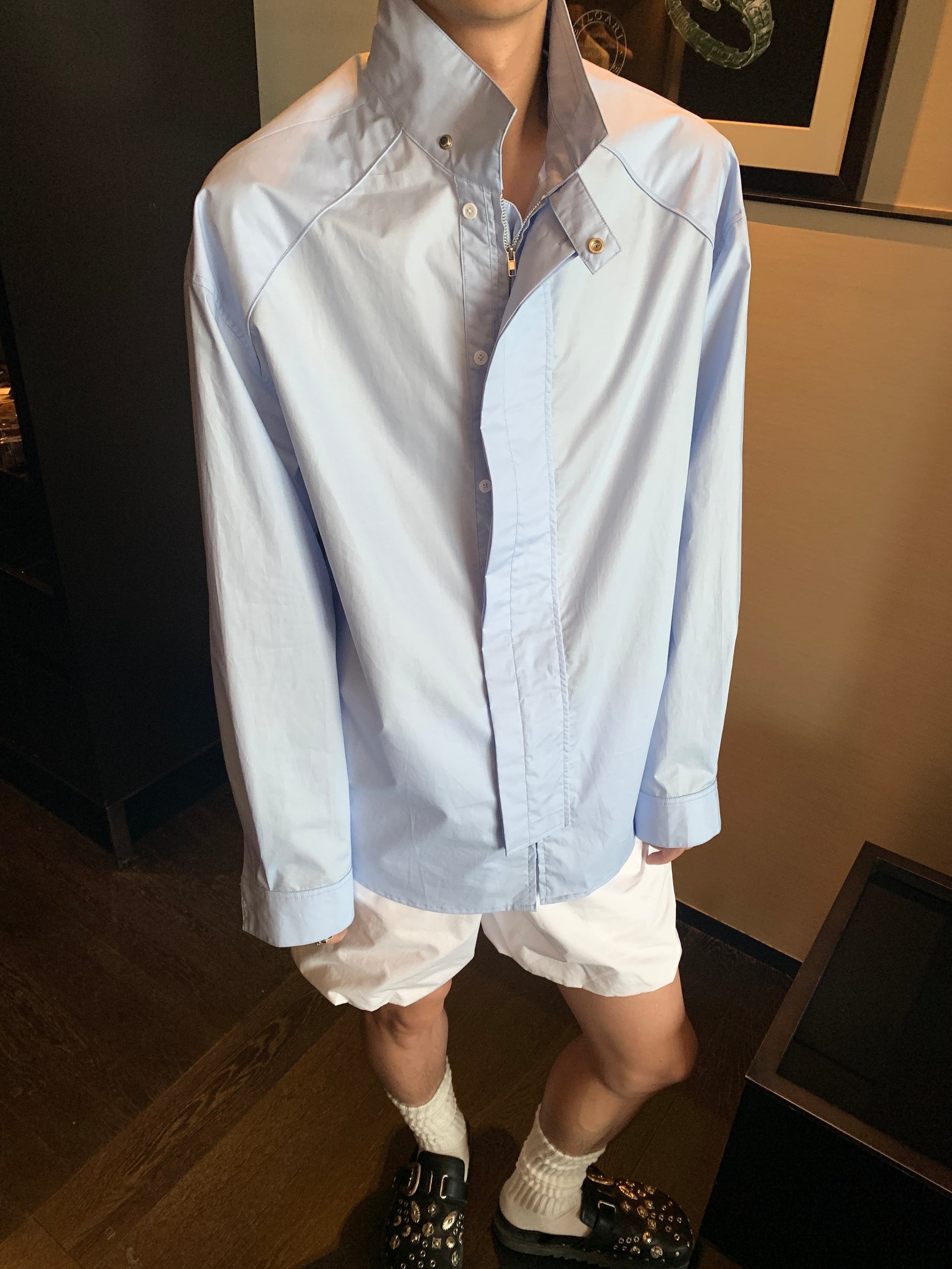 جاكيت قميص بملمس الورق مع ياقة واقفة