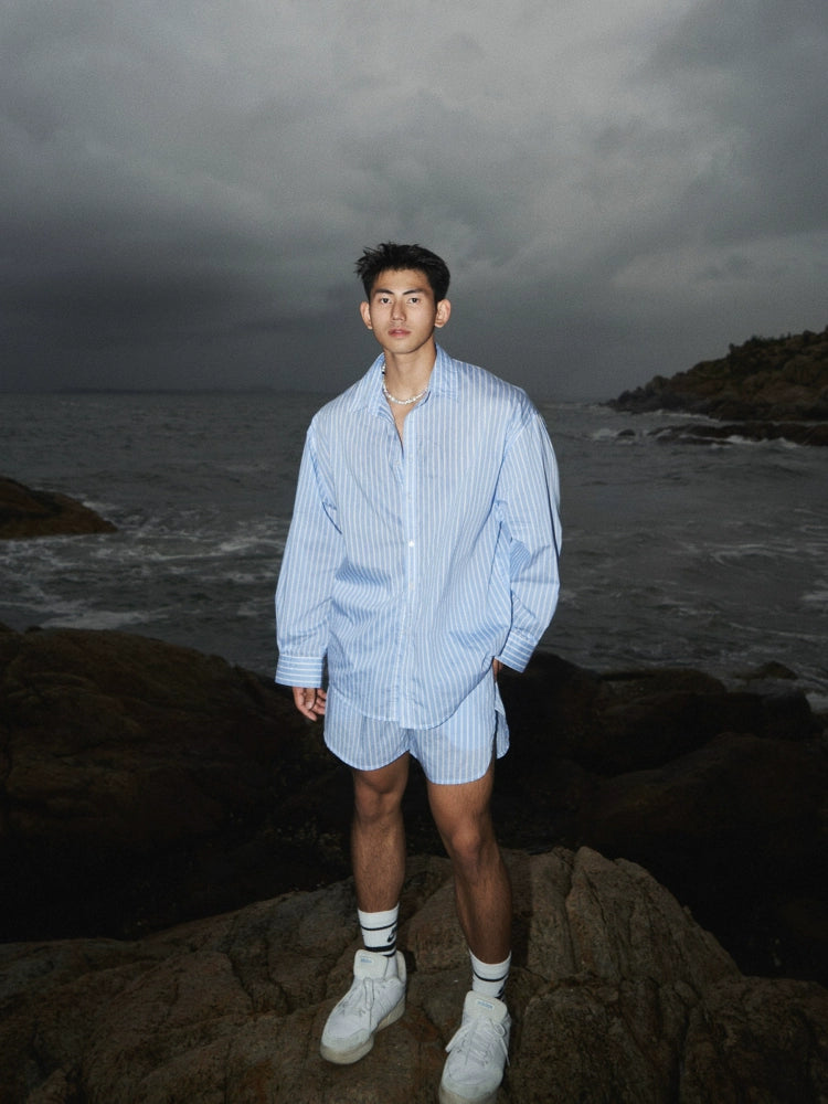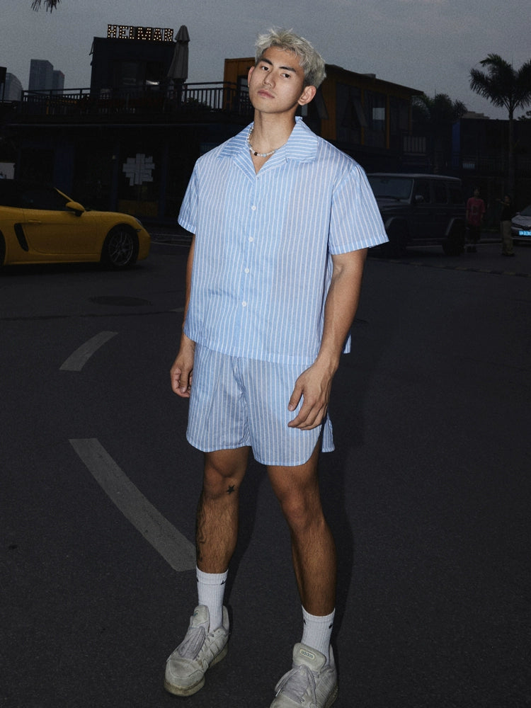 طقم قميص وبنطلون مخطط بأسلوب العطلة