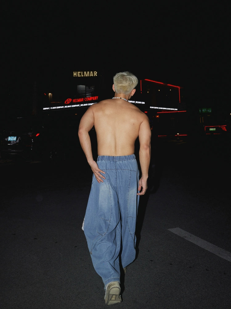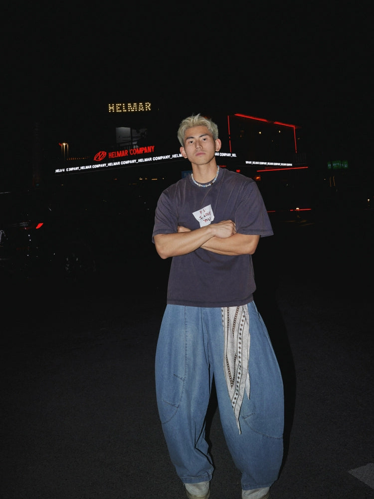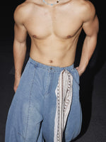 بنطال كاجوال بتفاصيل وشاح واسع الساق