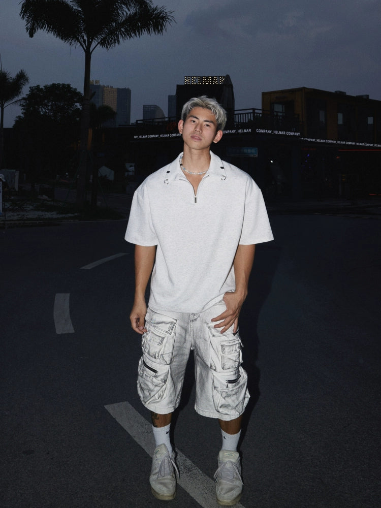 قميص بولو غير رسمي مع مشبك سحاب فضفاض