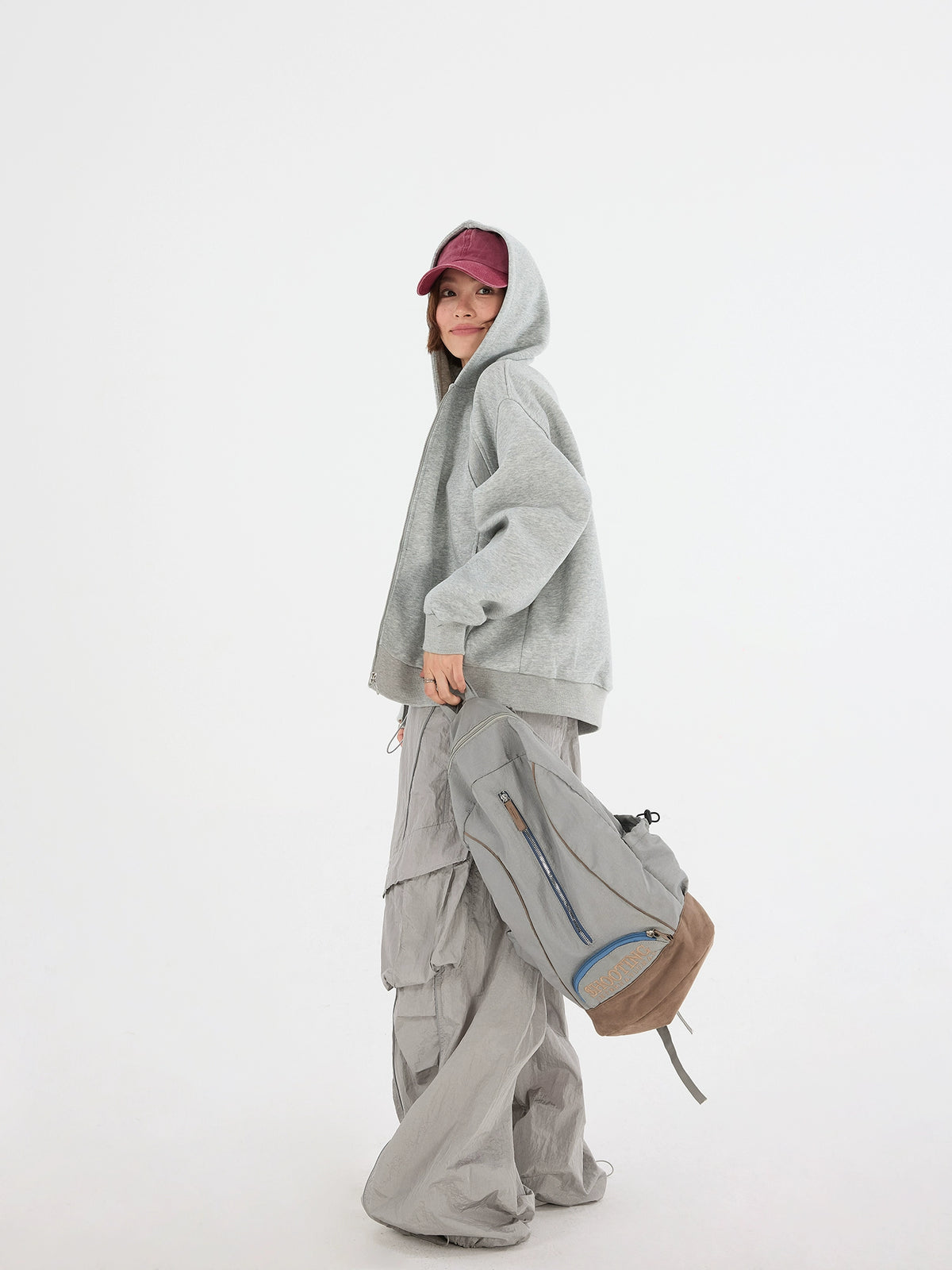 سويت شيرت بغطاء رأس بكتف مستقيم بطبقة هوائية