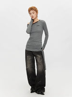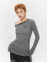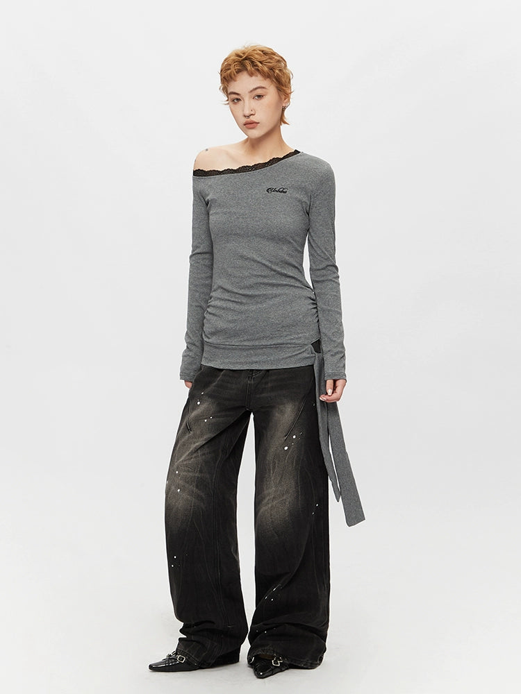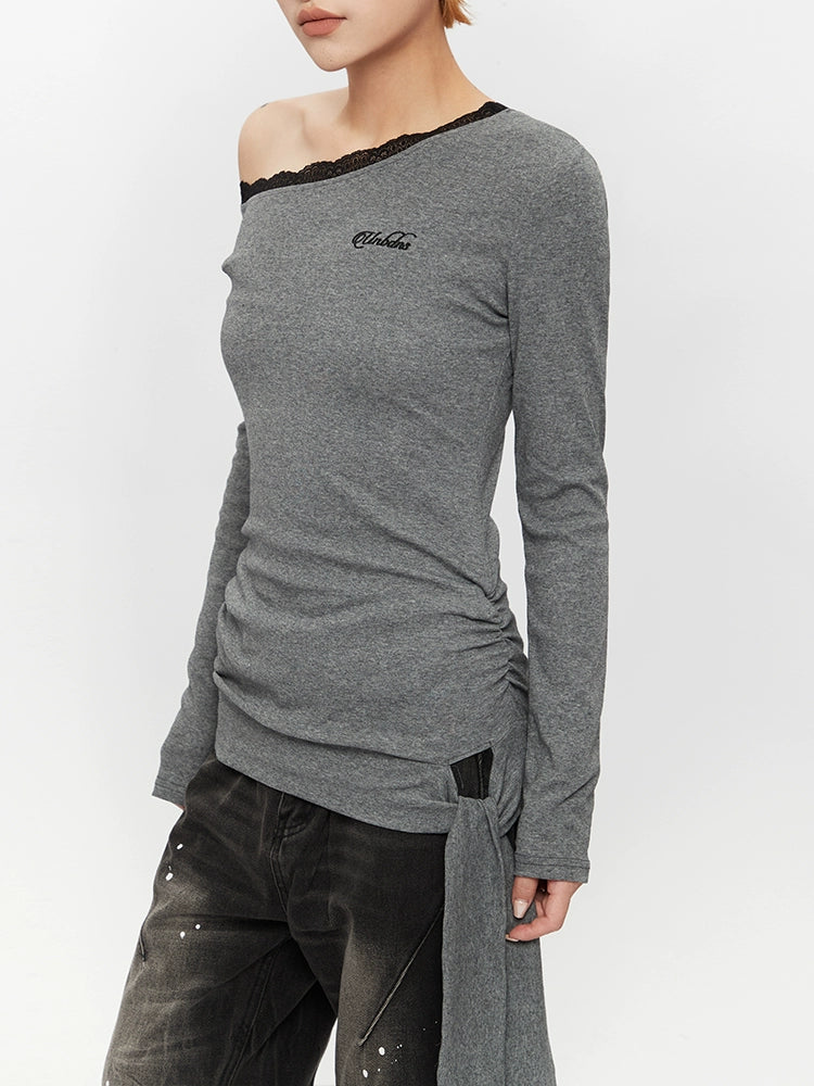 بلوزة طويلة الأكمام من الدانتيل بدون كتف غير متماثلة