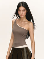 قميص بدون أكمام بتصميم غير متماثل وقصة ضيقة