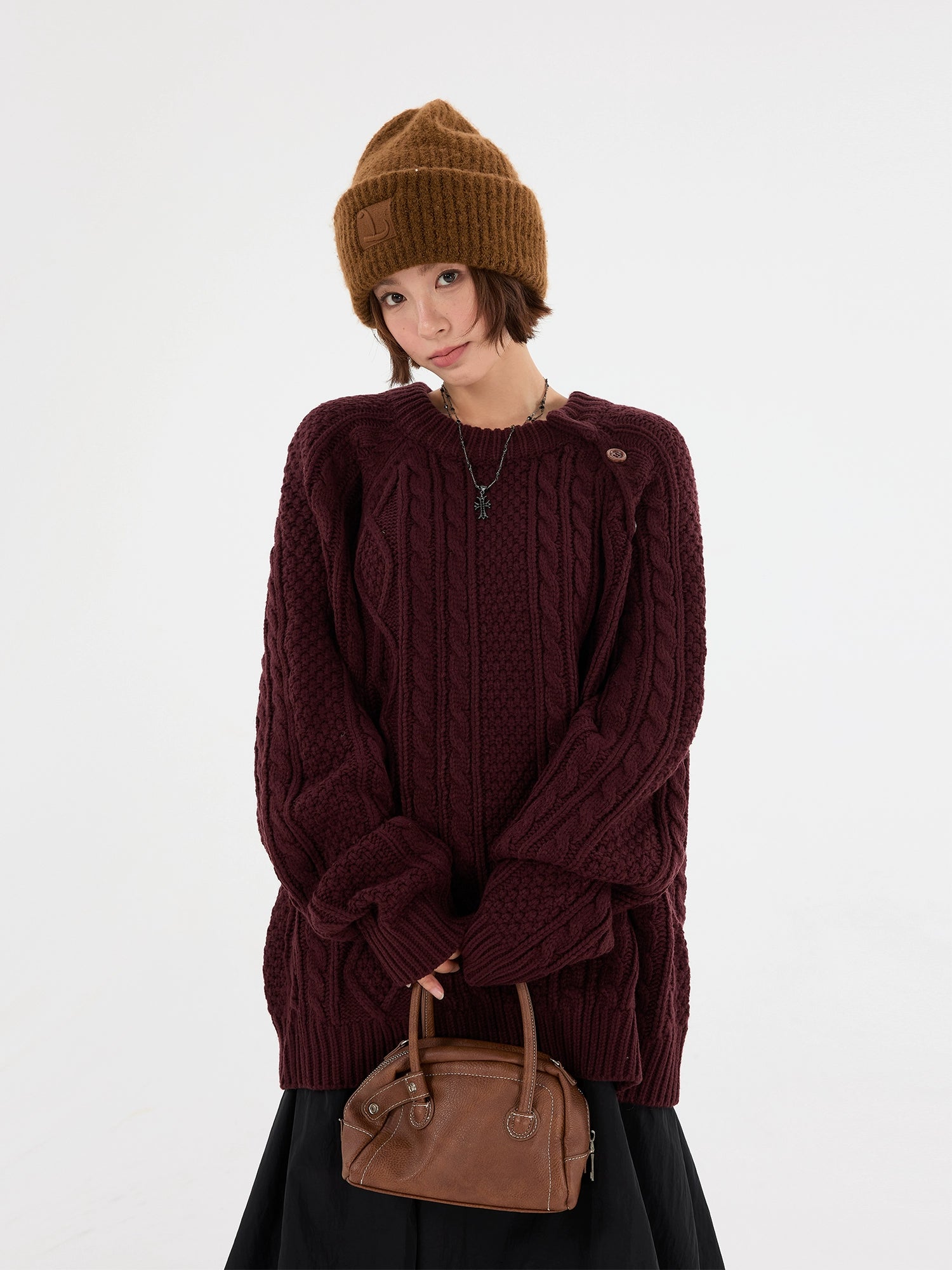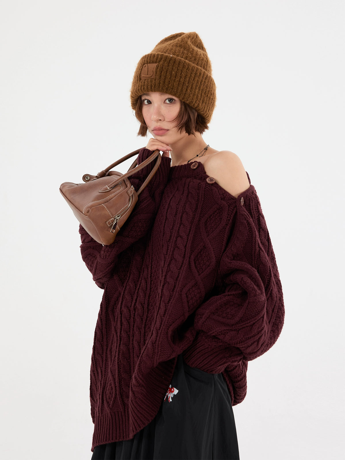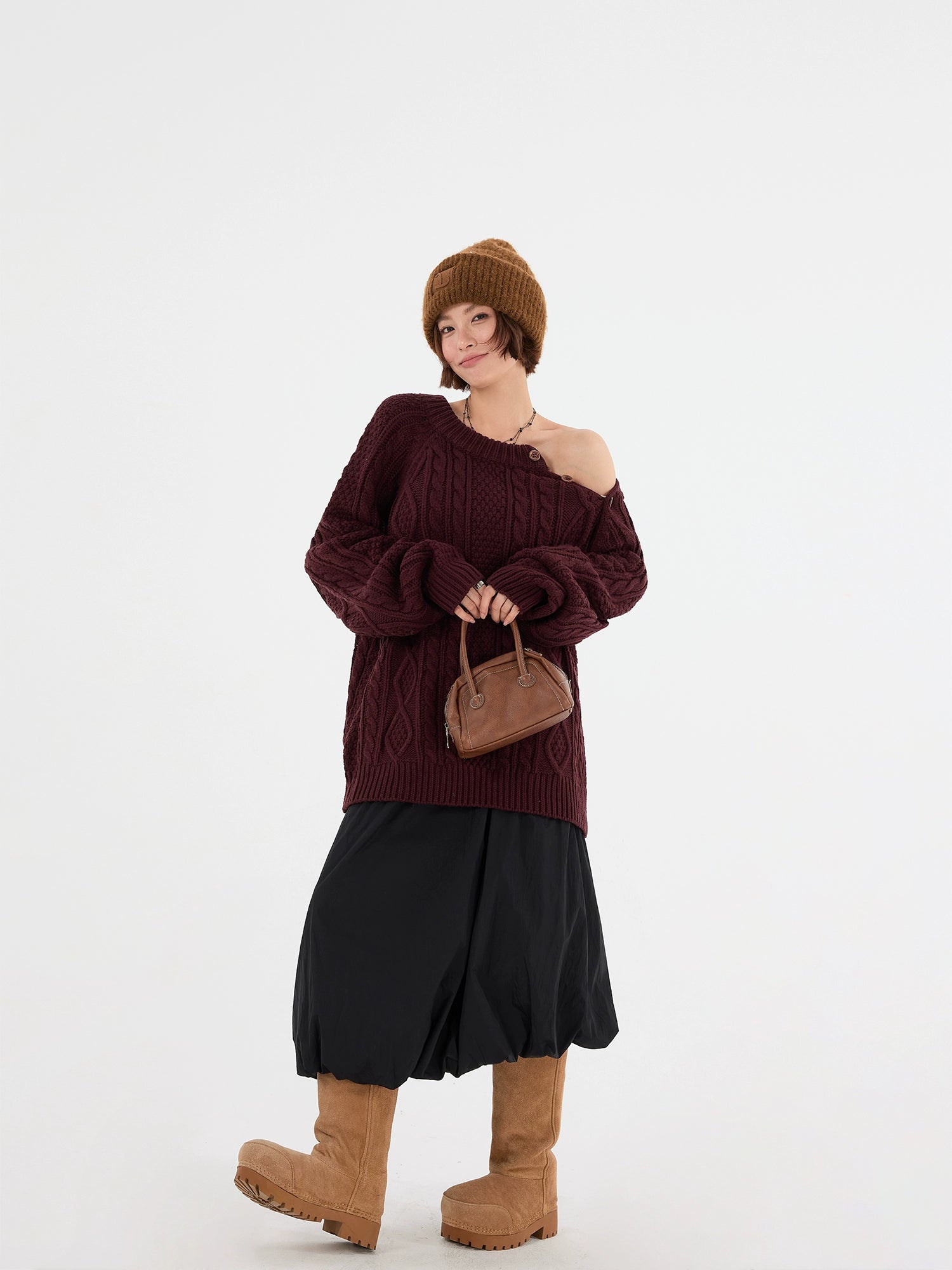 سويت شيرت بفتحة كتف غير متماثلة مع حياكة سلكية