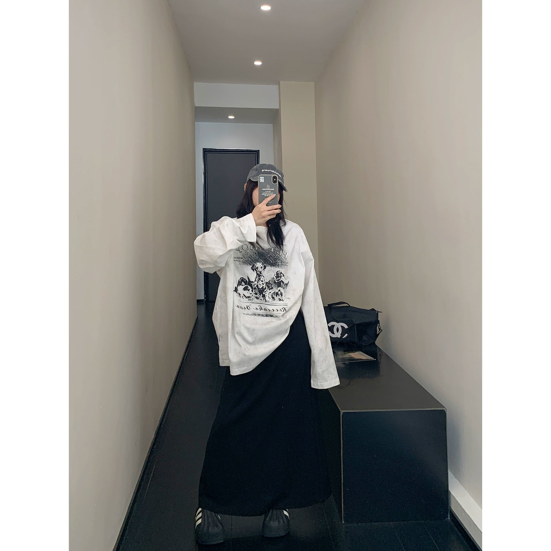 طباعة كلب كرتوني بأكمام طويلة وقبة عالية
