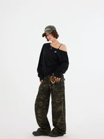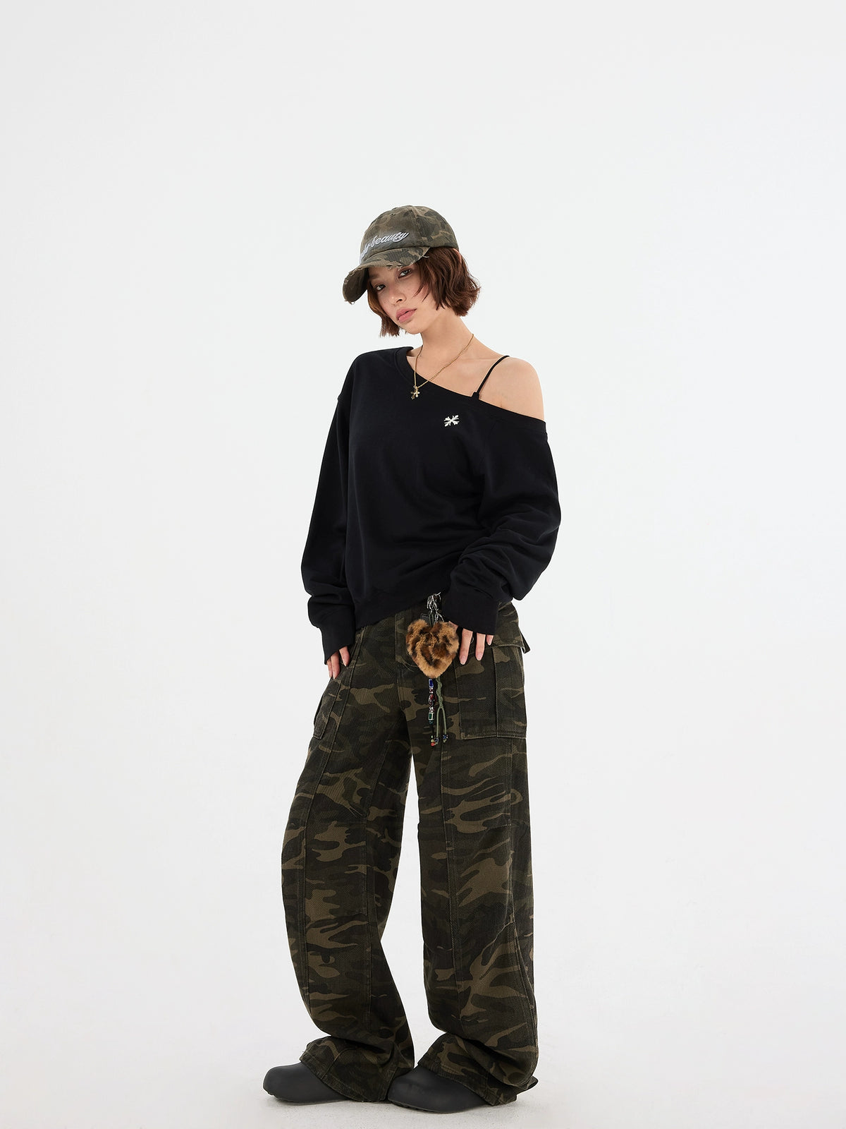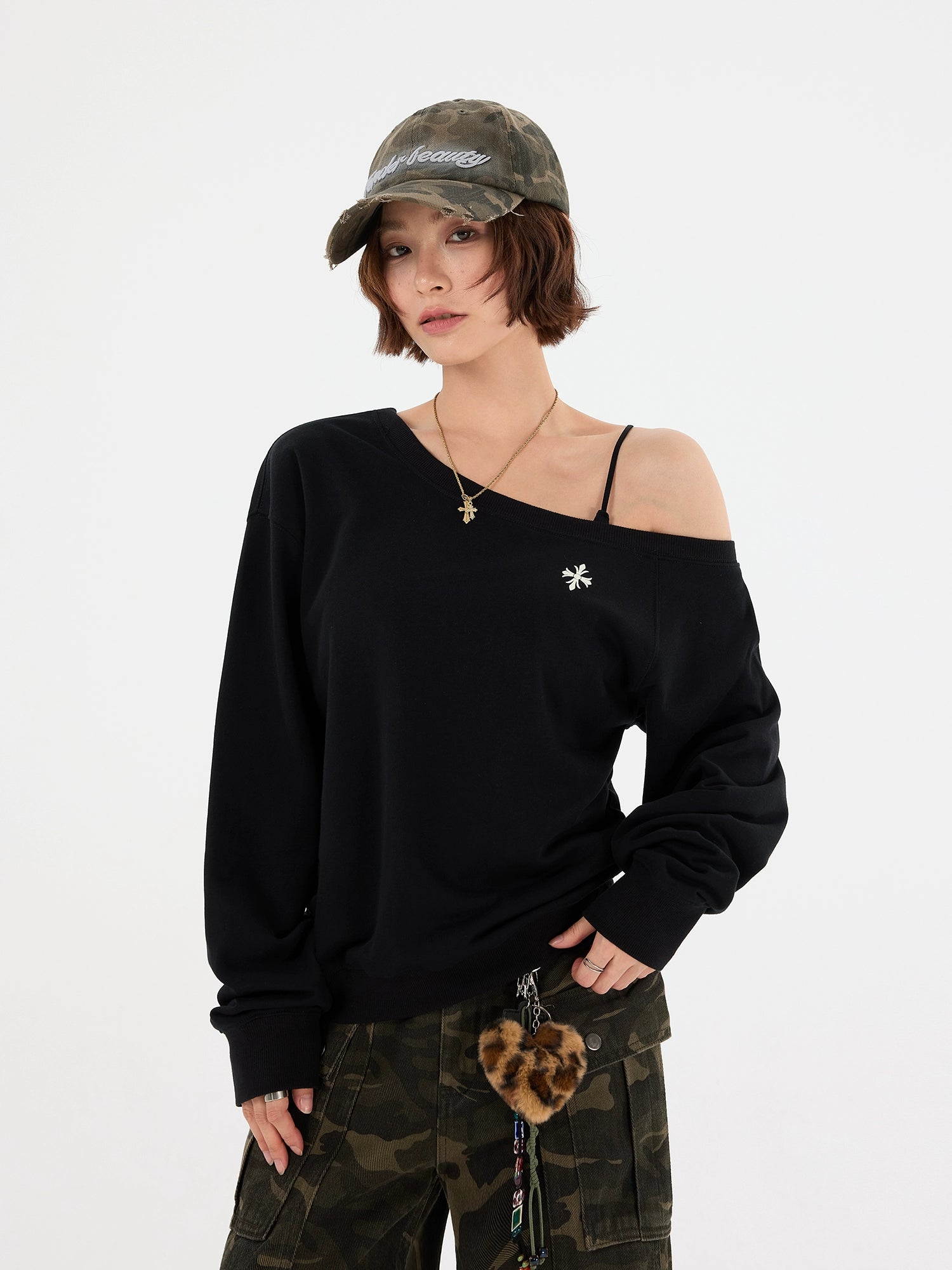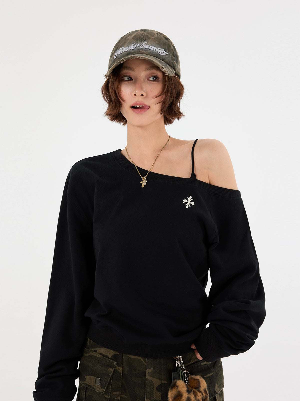 سويت شيرت بولوفر بكتف مكشوف بطباعة كروس