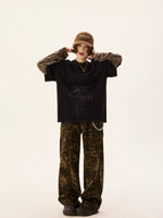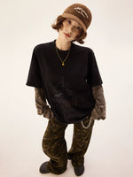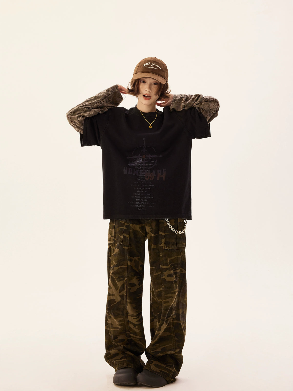 قميص طويل الأكمام بتصميم تمويه مموه متشقق