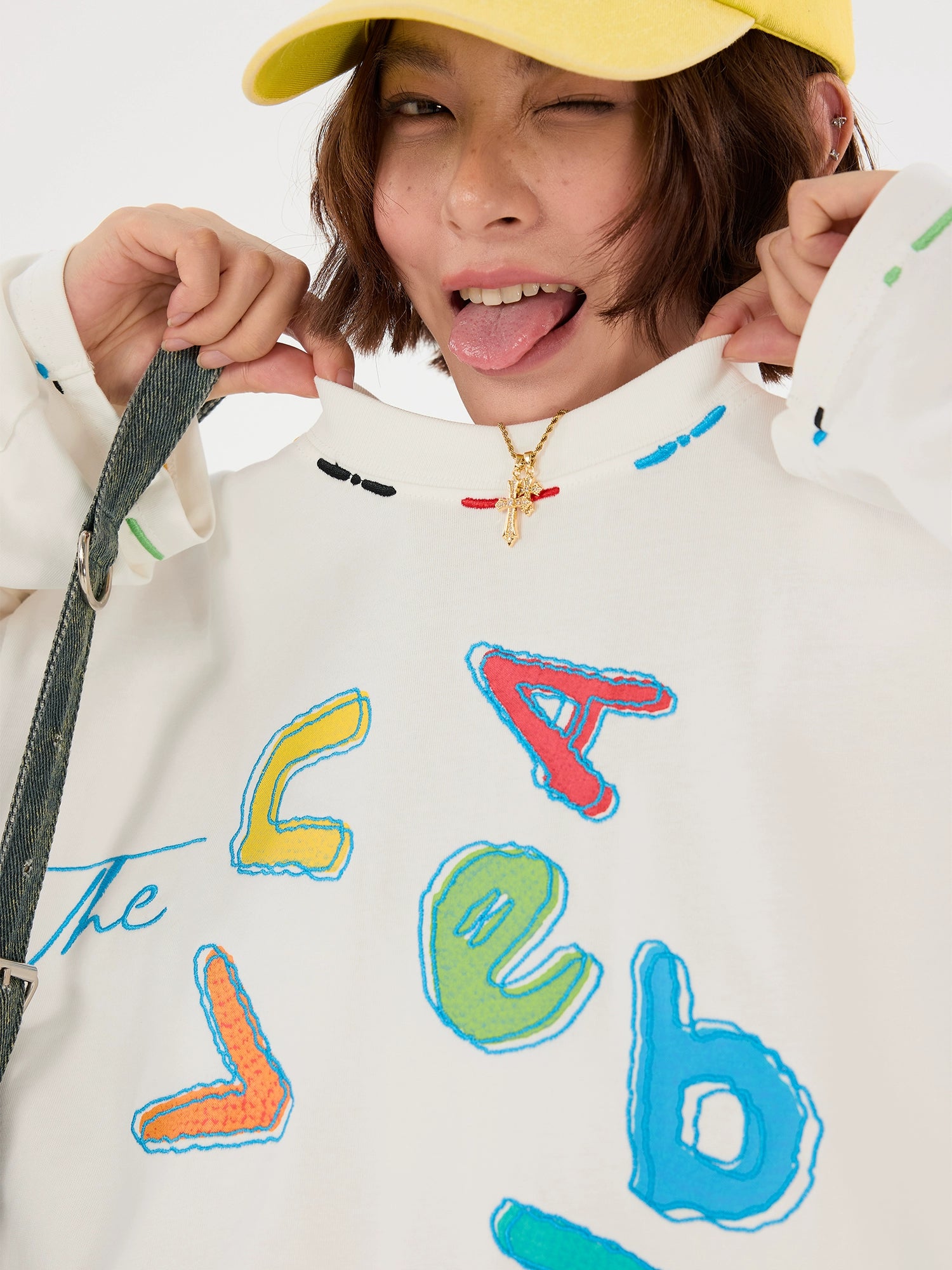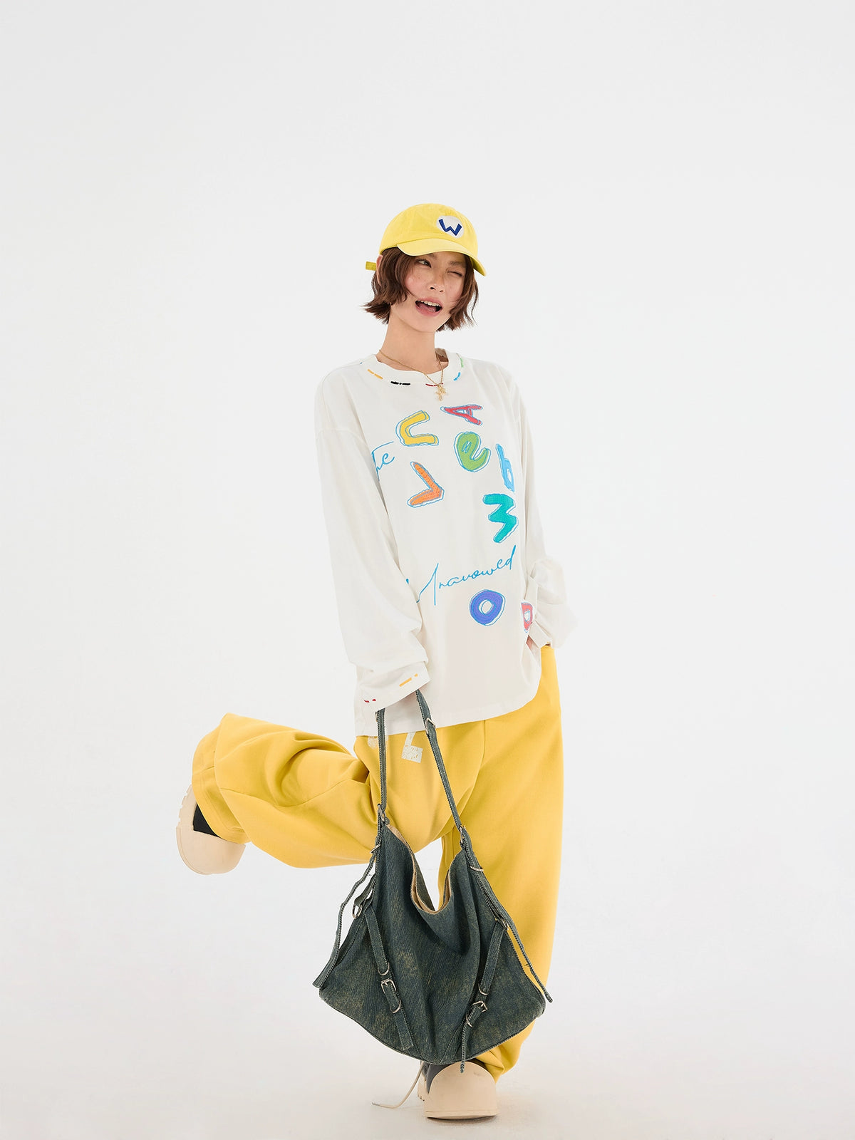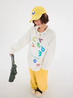 تي شيرت جرافيتي بأكمام طويلة فضفاضة وياقة مدورة