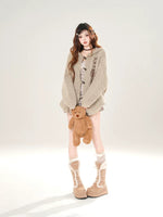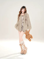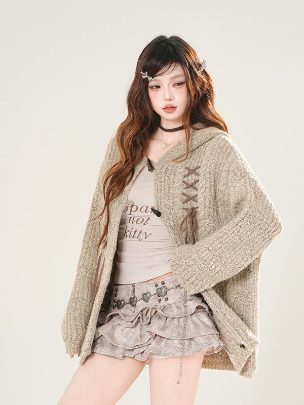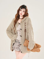 سترة كاردجان محبوكة بغطاء رأس مع إغلاق زر
