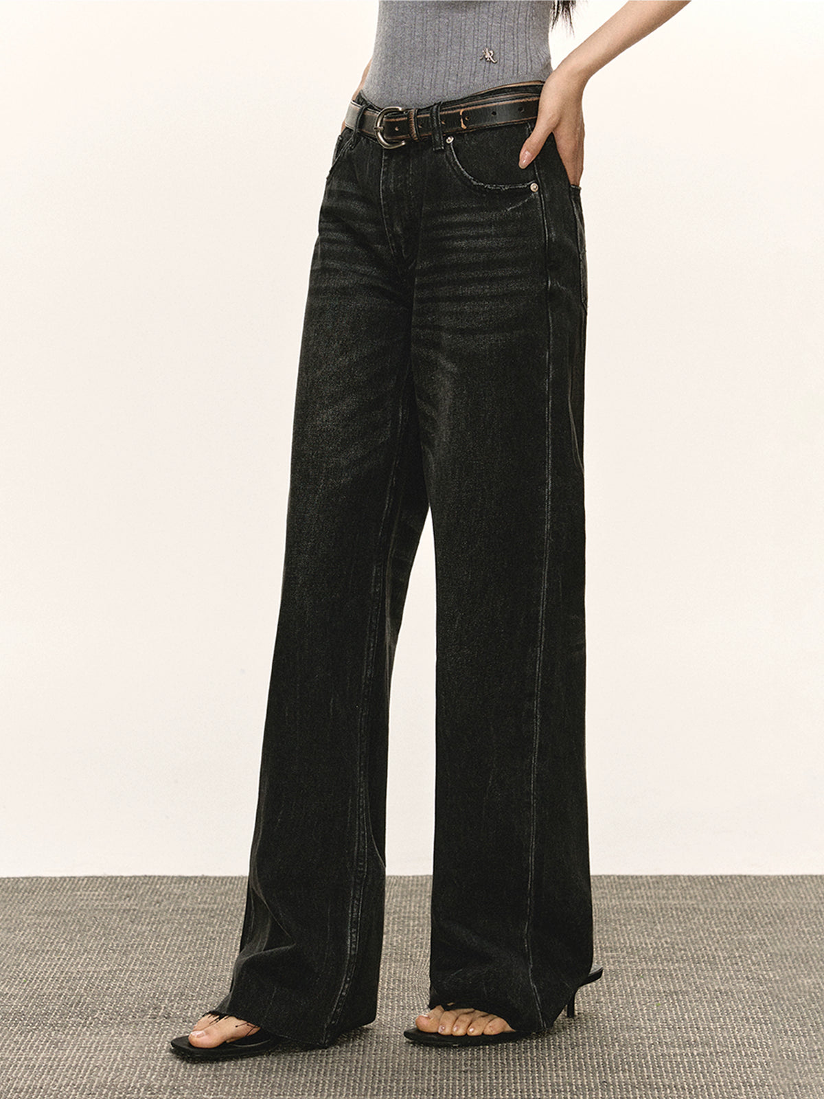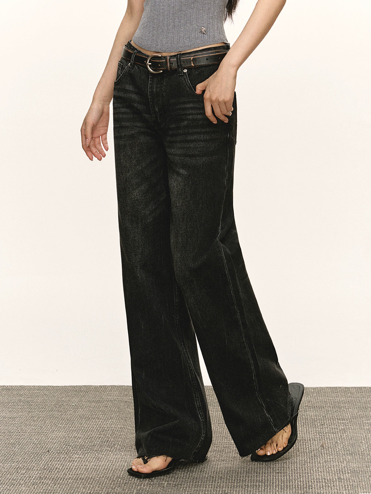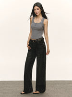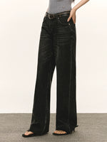 بنطلون جينز واسع الساق بخصر منخفض على الطراز الرجعي