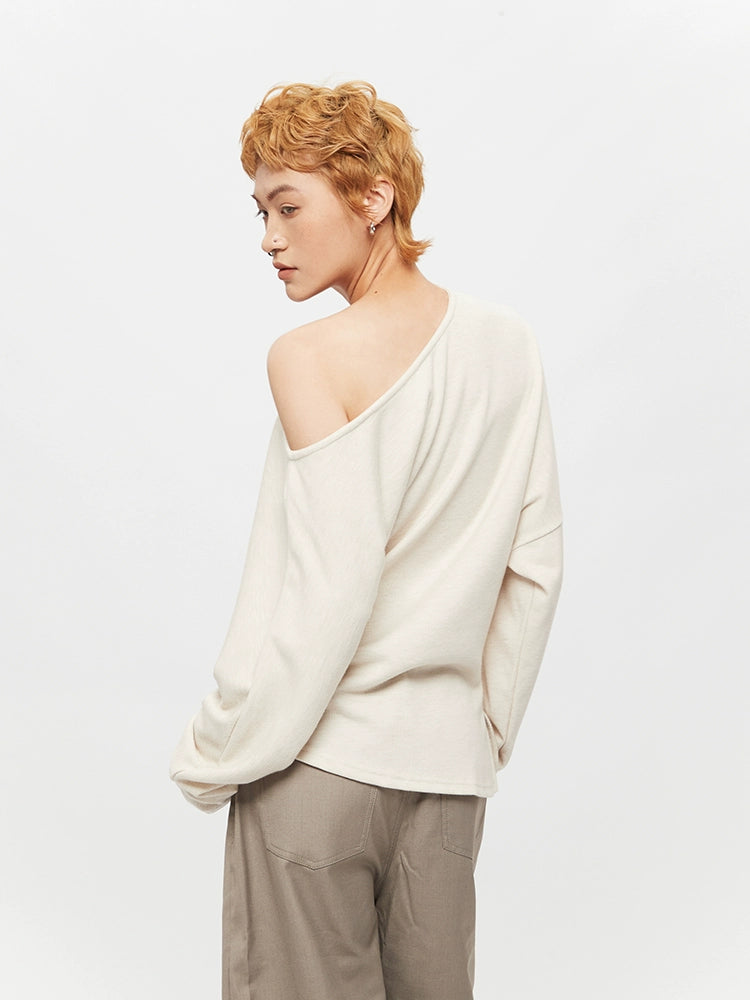 بلوزة بأكمام طويلة وياقة مائلة بدون أكتاف