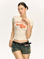 تي شيرت ضيق بطبعة الكرز الرجعية