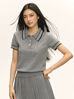 قميص بولو محبوك بأسلوب ريترو مع طية صدر