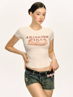 تي شيرت قصير الأكمام بقصة ريترو نحيفة