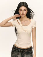 بلوزة ضيقة بأكمام قصيرة وياقة عالية بتصميم ريترو